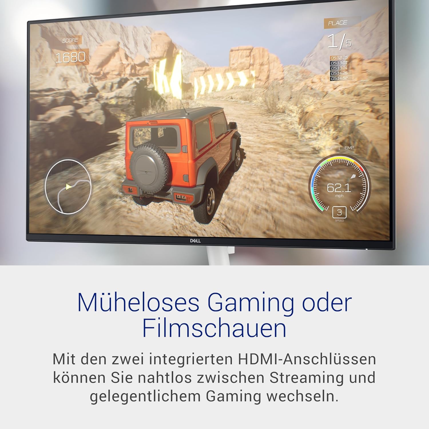 Dell S2425H 24-инчов Full HD (1920 x 1080) монитор, 100Hz, IPS, 4ms, 99% sRGB, вградени високоговорители, ултратънка рамка, 2 x HDMI, бял