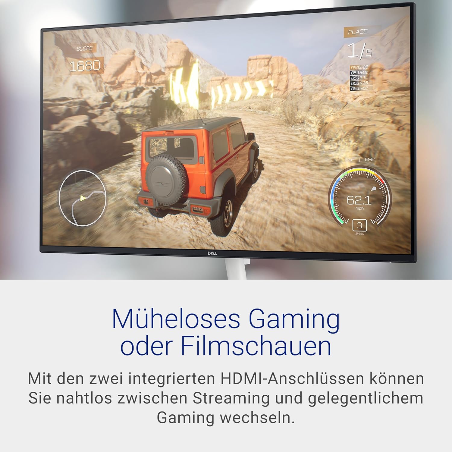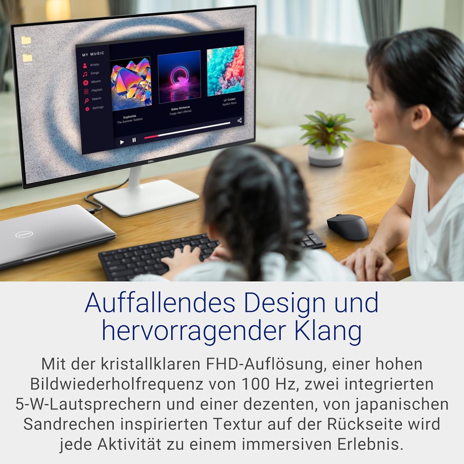 Dell S2725H 27-инчов Full HD (1920 x 1080) монитор, 100Hz, IPS, 4ms, 99% sRGB, вградени високоговорители, ултратънка рамка, 2 x HDMI, бял