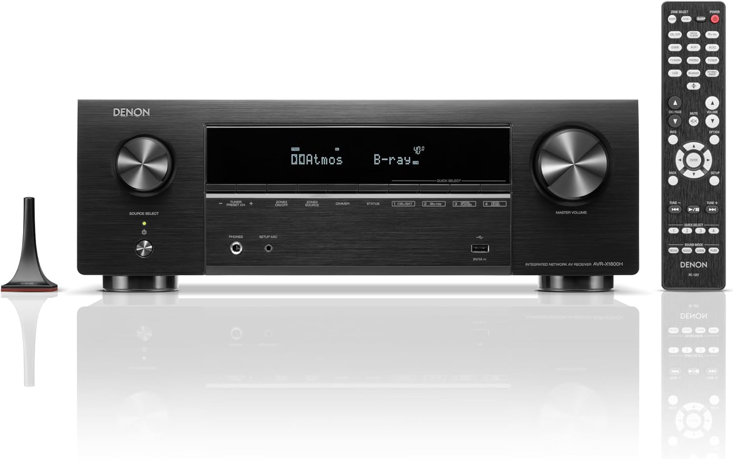 Denon AVR-X1800H 7.2 канален AV ресивър, HiFi усилвател с Dolby Atmos, DTS:X, 6 HDMI входа и 1 изход, 8K HDMI, Bluetooth, WiFi, AirPlay 2, HEOS Multiroom, съвместим с Alexa