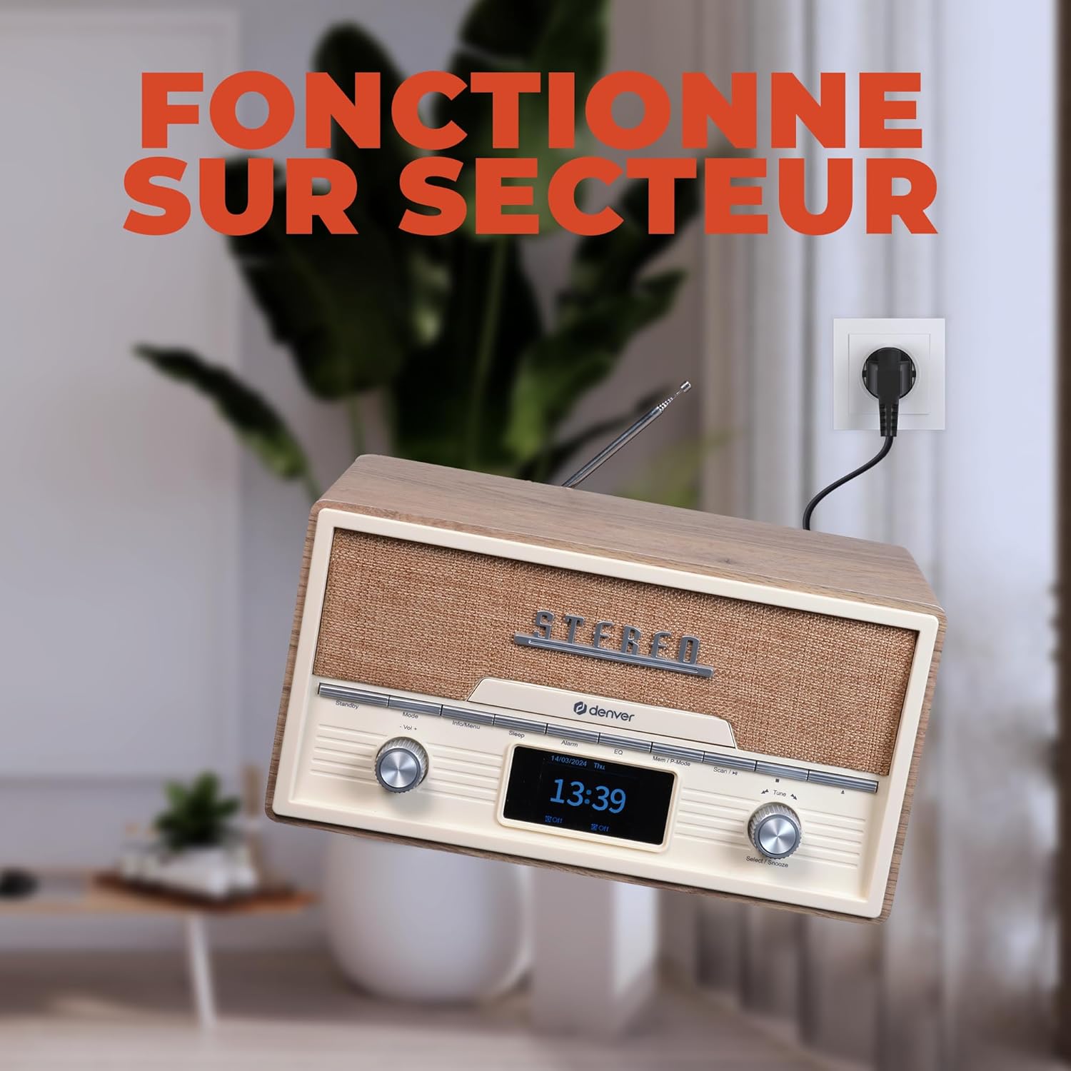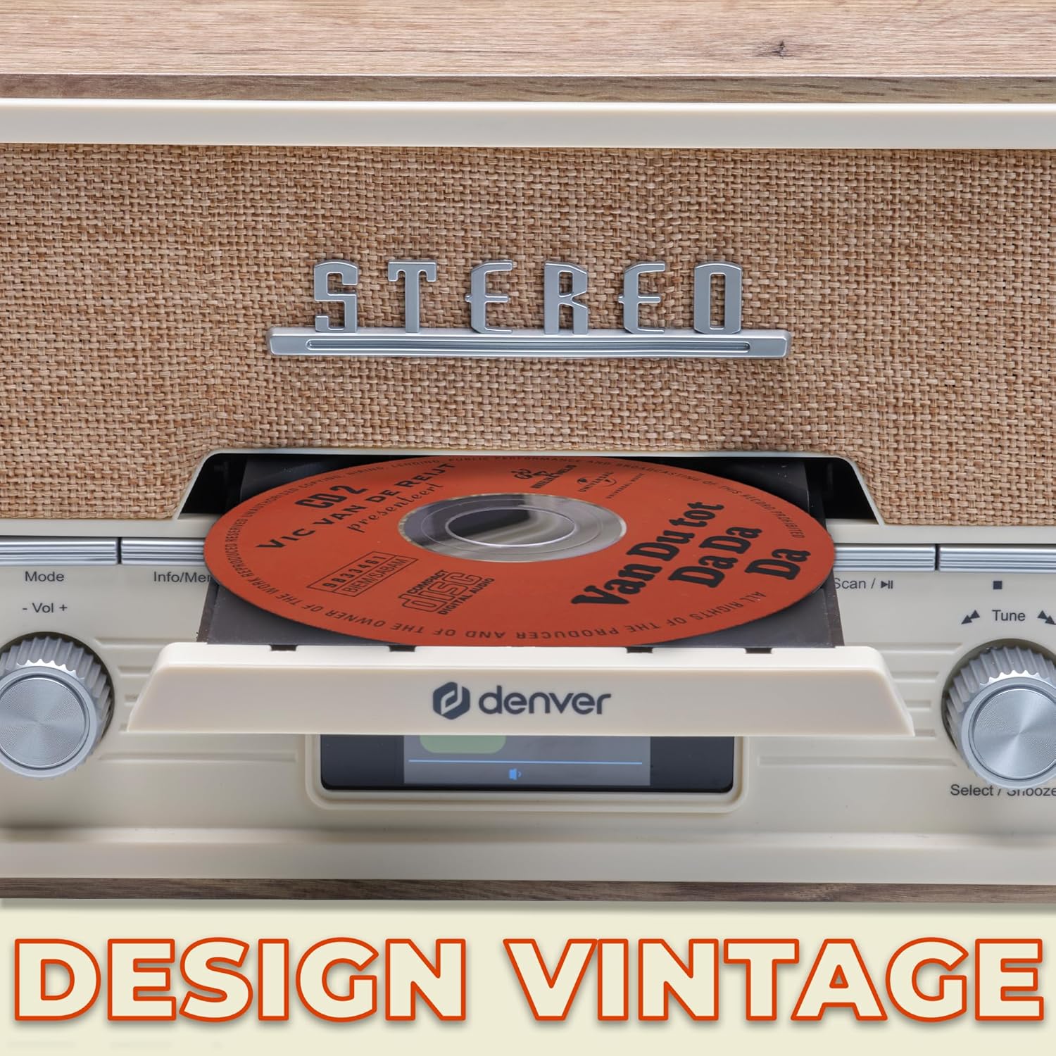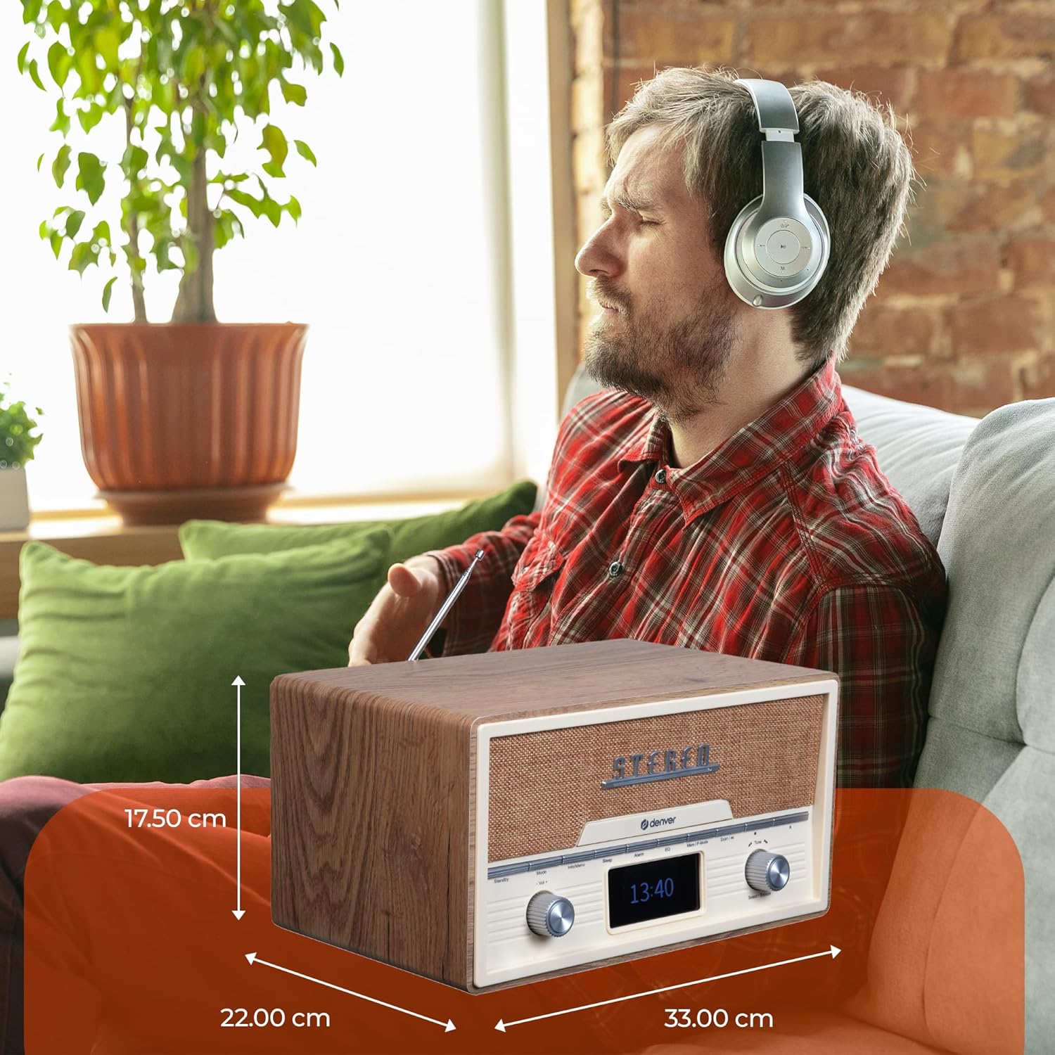 Открийте вечния чар на ретро радиото Denver MDA-525, което съчетава традиционен дизайн с модерни технологии. Насладете се на разнообразно радио удоволствие с FM/DAB+ и 20 станции пред предварително зададените. Вграденият CD плейър ви позволява да слушате любимите си CD-та с висококачествен звук. С RMS мощност на високоговорителите 2 x 50 W / 2 x 5 W, радиото предлага впечатляващо слушателско изживяване. Функцията Bluetooth ви позволява безжично да се свържете със смартфона си за първокласно музикално удоволствие. Използвайте разнообразни опции за свързване, като AUX вход за MP3 плейъри и USB порт за зареждане на вашия смартфон. 3,5 мм жак за слушалки позволява лично слушателско изживяване. Ретро радиото Denver MDA-525 съчетава стил и функционалност за съвременно музикално изживяване в носталгичен вид. Вземете го и се потопете в свят, пълен с музика! Характеристики: - CD плейър - FM/DAB+ радио - 20 запаметени станции (10 DAB+ / 10 FM) - Bluetooth функция - Будилник - TFT цветен дисплей - Вградени 2x 50 W (2x 5 W RMS) високоговорителя - AUX-IN аудио вход за свързване на външни аудио устройства, като MP3 плейъри - USB порт за зареждане на смартфон - Жак за слушалки 3,5 мм - - Телескопична антена Технически данни: - Работно напрежение: 110-230 V, 50 Hz - Синусоидална / музикална мощност: 50/100 W (2x 5 W RMS) - Честотен диапазон DAB+: 174-240 MHz - Честотен диапазон FM: 87,5...108 MHz - Връзки: USB, Aux-in, жак за слушалки, 3,5 мм жак - Цвят: светло кафяв - Размери (ШxДxДx) 330x30x 220x177 мм - Тегло: 3,2 кг Съдържание на кутията: - Радио - Захранващ адаптер - Ръководство за потребителя