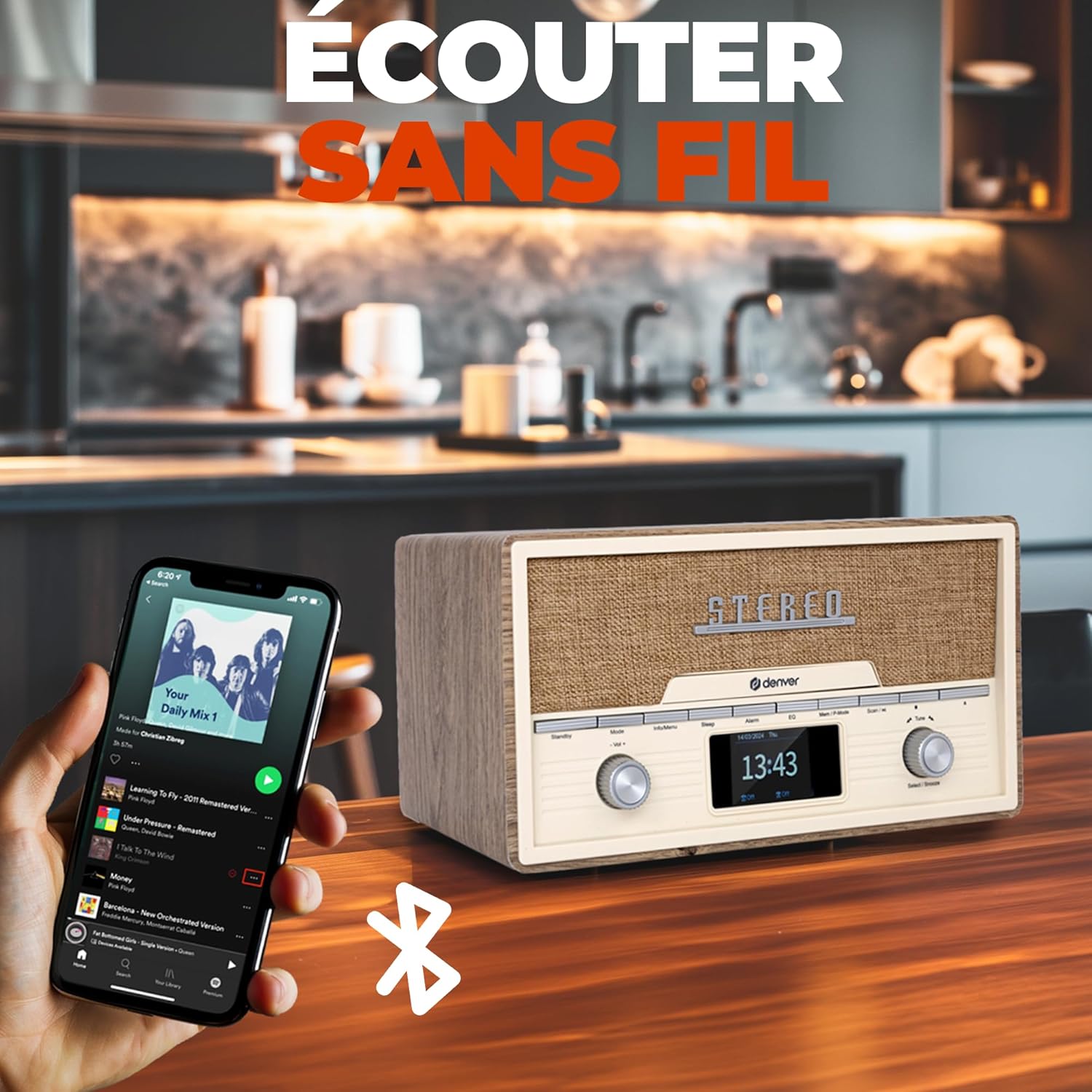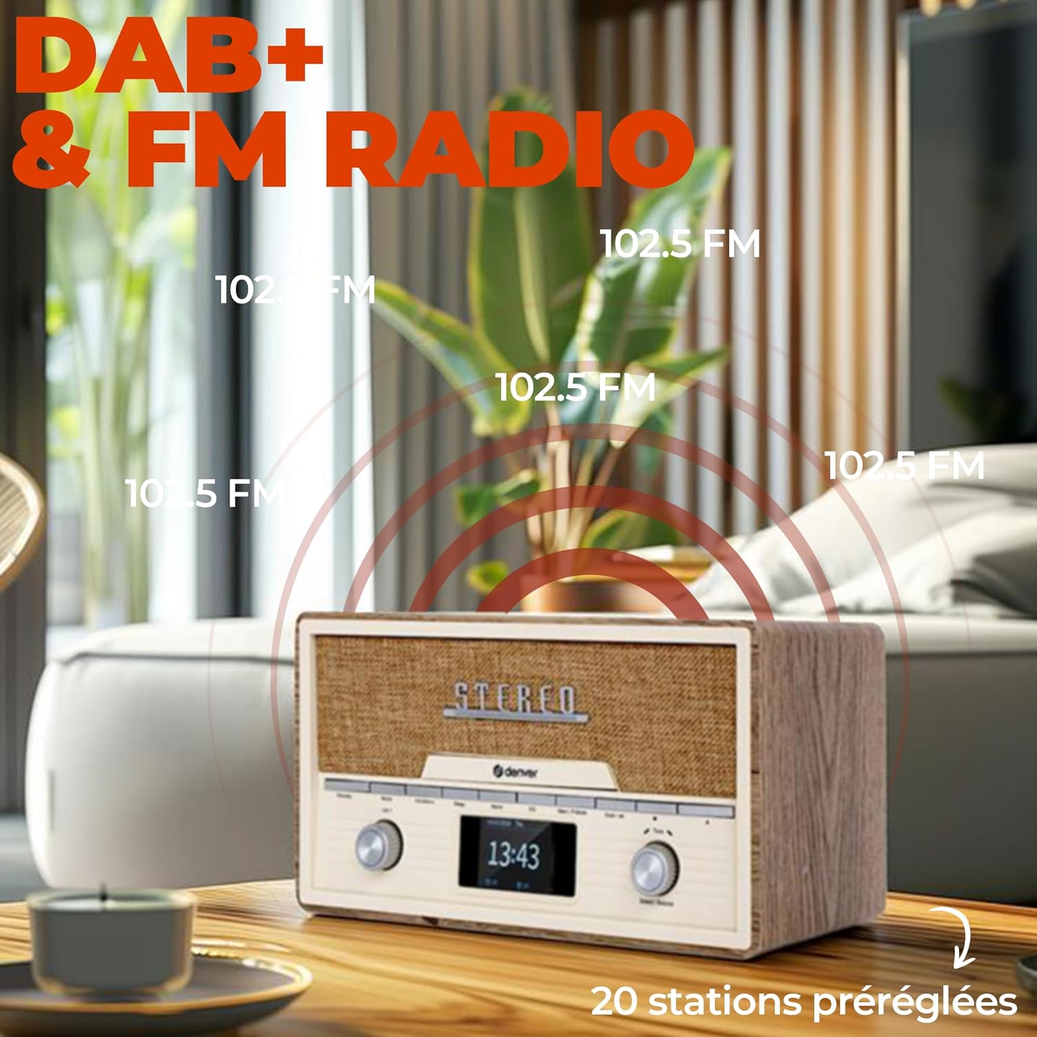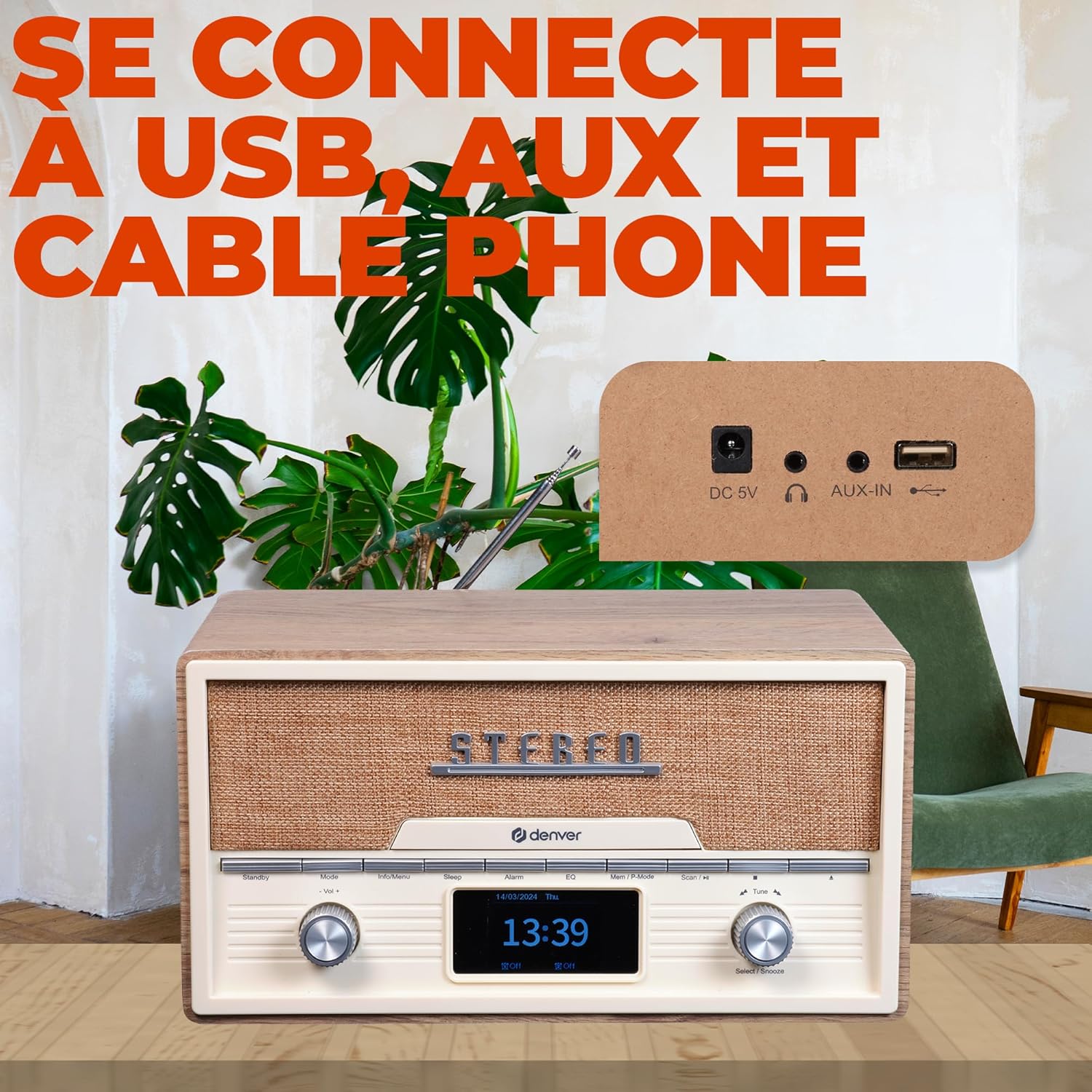 Открийте вечния чар на ретро радиото Denver MDA-525, което съчетава традиционен дизайн с модерни технологии. Насладете се на разнообразно радио удоволствие с FM/DAB+ и 20 станции пред предварително зададените. Вграденият CD плейър ви позволява да слушате любимите си CD-та с висококачествен звук. С RMS мощност на високоговорителите 2 x 50 W / 2 x 5 W, радиото предлага впечатляващо слушателско изживяване. Функцията Bluetooth ви позволява безжично да се свържете със смартфона си за първокласно музикално удоволствие. Използвайте разнообразни опции за свързване, като AUX вход за MP3 плейъри и USB порт за зареждане на вашия смартфон. 3,5 мм жак за слушалки позволява лично слушателско изживяване. Ретро радиото Denver MDA-525 съчетава стил и функционалност за съвременно музикално изживяване в носталгичен вид. Вземете го и се потопете в свят, пълен с музика! Характеристики: - CD плейър - FM/DAB+ радио - 20 запаметени станции (10 DAB+ / 10 FM) - Bluetooth функция - Будилник - TFT цветен дисплей - Вградени 2x 50 W (2x 5 W RMS) високоговорителя - AUX-IN аудио вход за свързване на външни аудио устройства, като MP3 плейъри - USB порт за зареждане на смартфон - Жак за слушалки 3,5 мм - - Телескопична антена Технически данни: - Работно напрежение: 110-230 V, 50 Hz - Синусоидална / музикална мощност: 50/100 W (2x 5 W RMS) - Честотен диапазон DAB+: 174-240 MHz - Честотен диапазон FM: 87,5...108 MHz - Връзки: USB, Aux-in, жак за слушалки, 3,5 мм жак - Цвят: светло кафяв - Размери (ШxДxДx) 330x30x 220x177 мм - Тегло: 3,2 кг Съдържание на кутията: - Радио - Захранващ адаптер - Ръководство за потребителя
