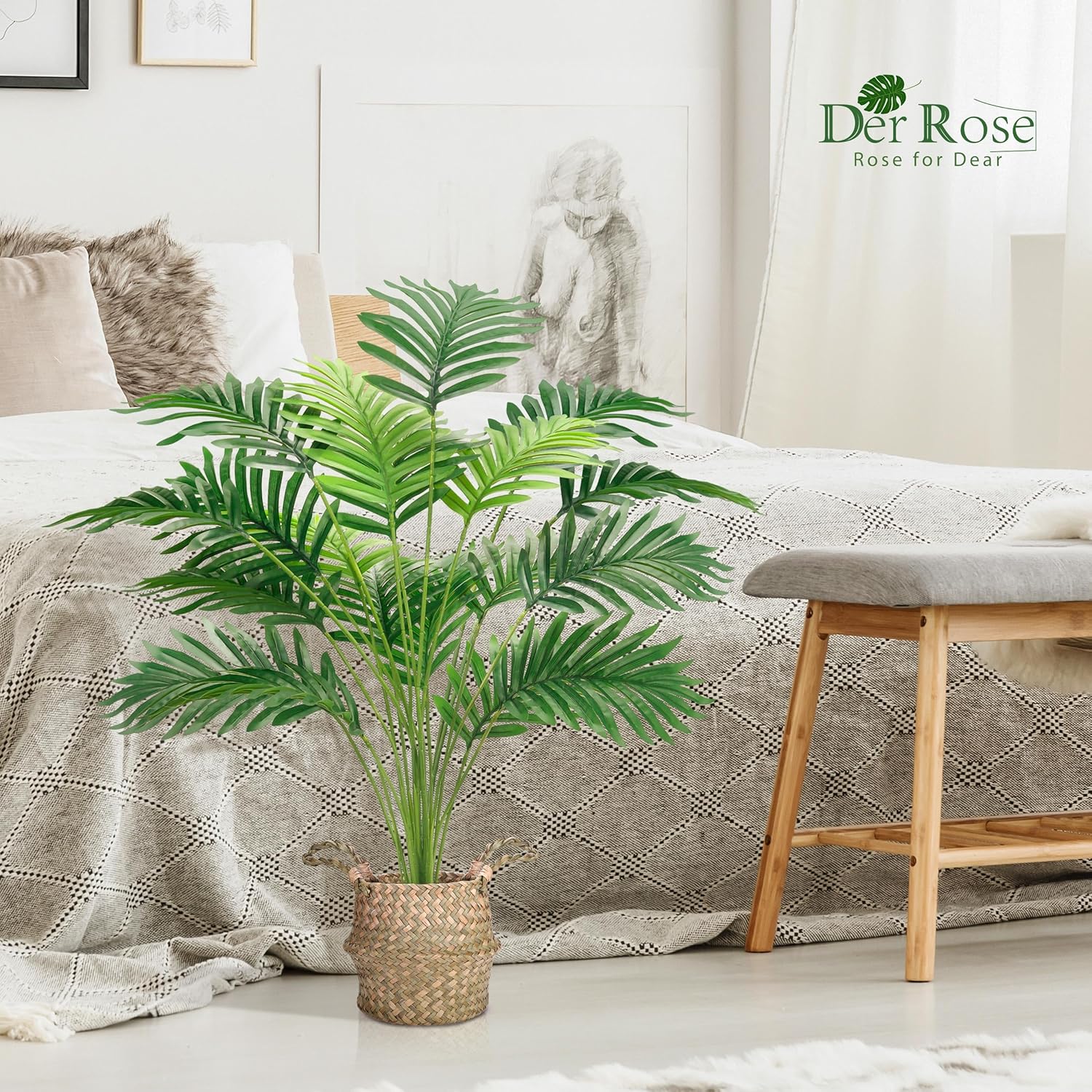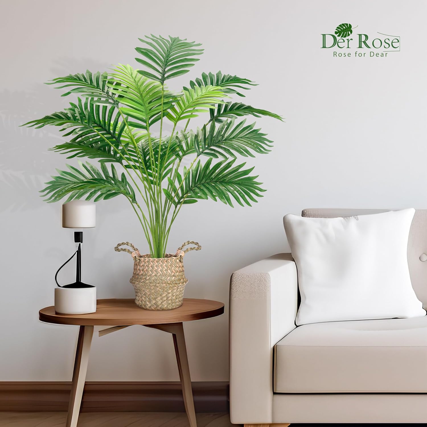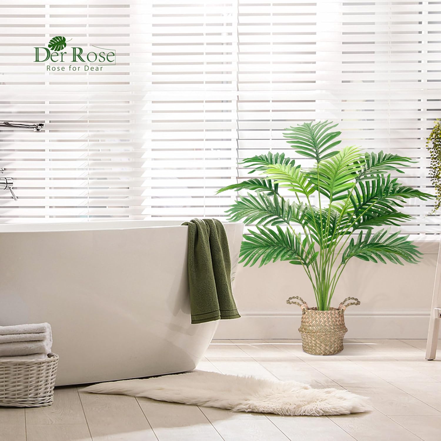 Der Rose 2 бр. изкуствени палми, 28-инчови големи изкуствени палми от арека с ръчно плетени кошници с дръжки за вътрешна, външна, домашен, офис, веранда, балкон, спалня, декорация