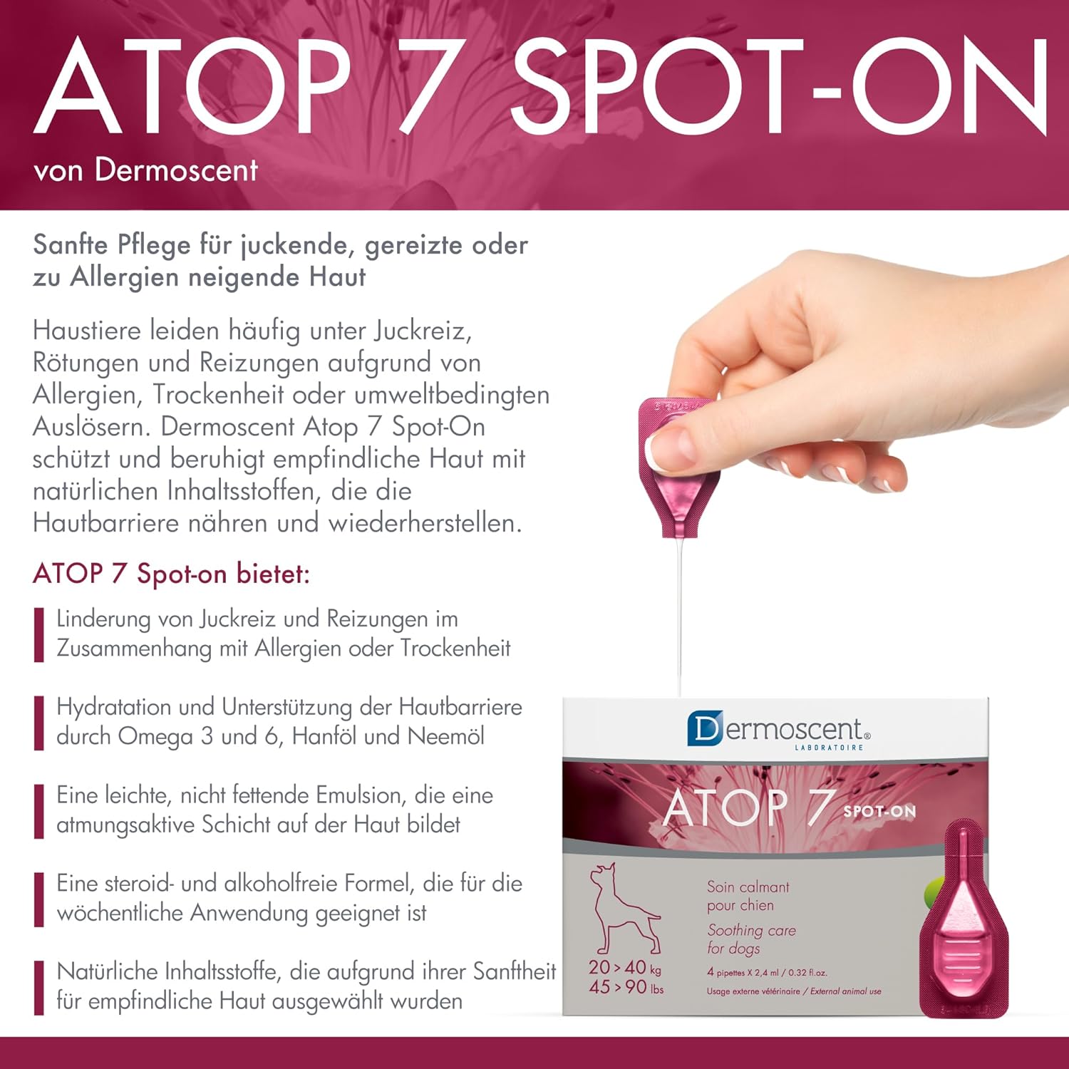 • DERMOSCENT Atop7 Spot за кучета и котки, 20-40 кг