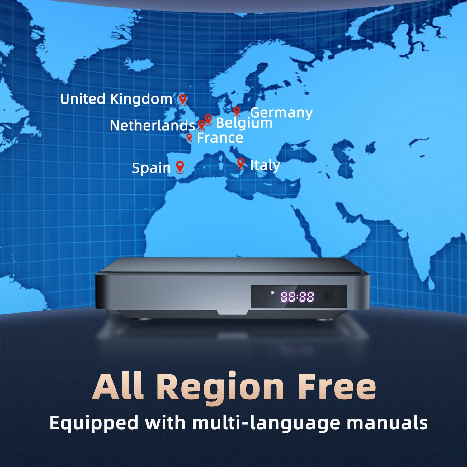 • - БЕЗПЛАТНО ЗА ВСИЧКИ РЕГИОНИ: DVD плейърът без регионални ограничения е съвместим с DVD-та от всички региони и поддържа CD, DVD, DVD±R, DVD±RW, CD-R/-RW, VCD, XVID, PHOTO CD, така че можете да се наслаждавате на любимите си филми от цял ​​свят.