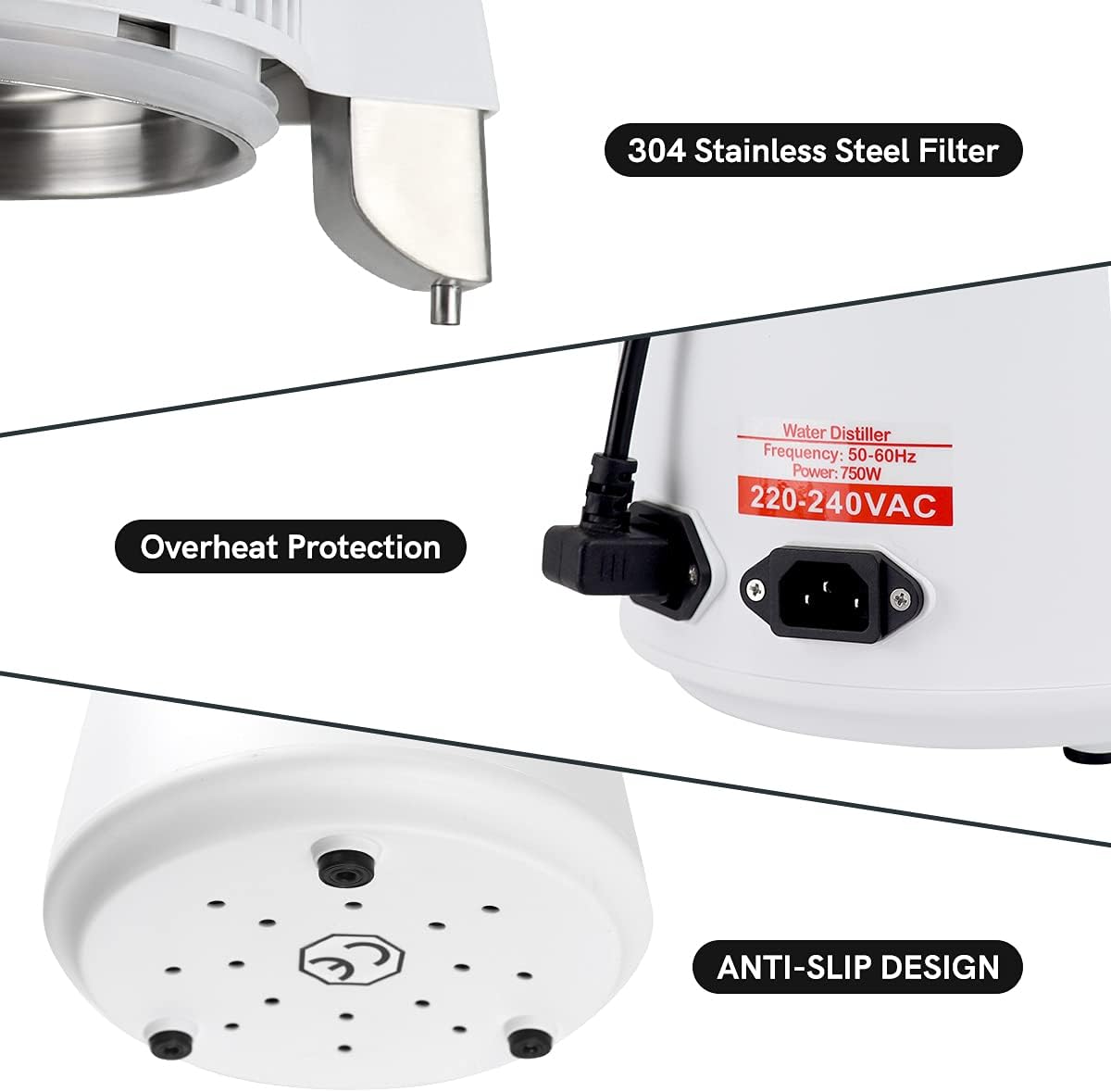 Този дестилатор за вода е перфектен инструмент за пречистване на водата и ви помага да поддържате постоянно количество дестилирана вода, независимо дали сте у дома или в офиса. Като перфектно допълнение към малка кухня, той не е много по-голям от чайник и не заема толкова много място.