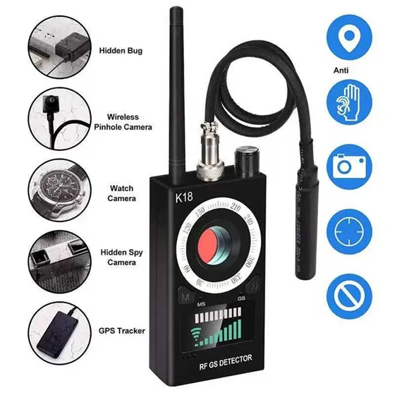Подобрена версия на K18 Professional GPS Signal Detector. Иновативен продукт за контрашпионаж, подходящ за най-различни цели. С него можете бързо и лесно да откриете устройства, които излъчват сигнал в диапазона от 1 MHz до 8GHz.