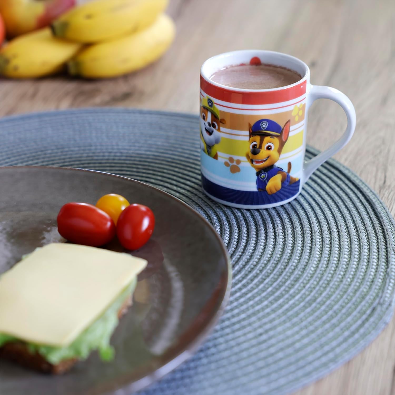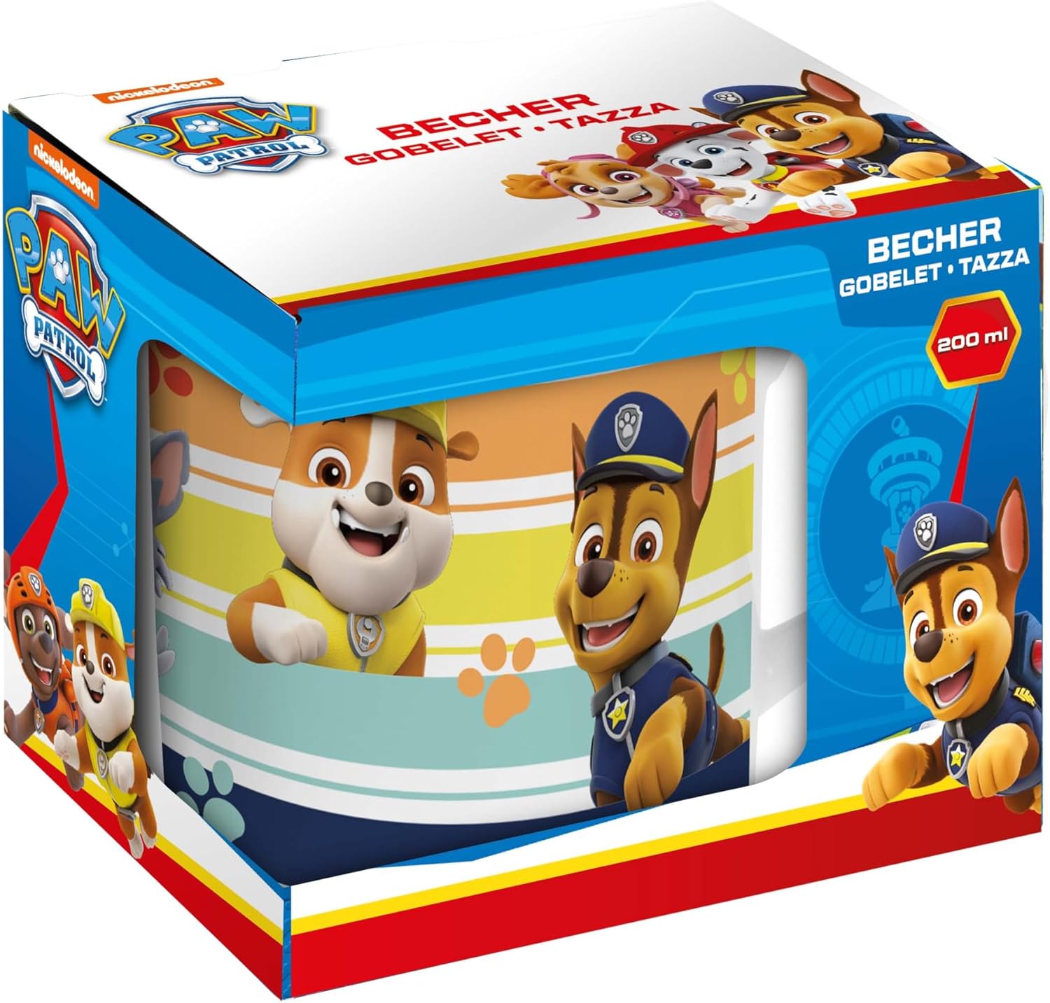 Тази цветна чаша с популярен дизайн на Пес Патрул със сигурност ще донесе усмивка на лицето на всяко дете. Изработена от порцелан, чашата е с вместимост приблизително 200 мл. Подходяща е за съдомиялна машина и микровълнова фурна.