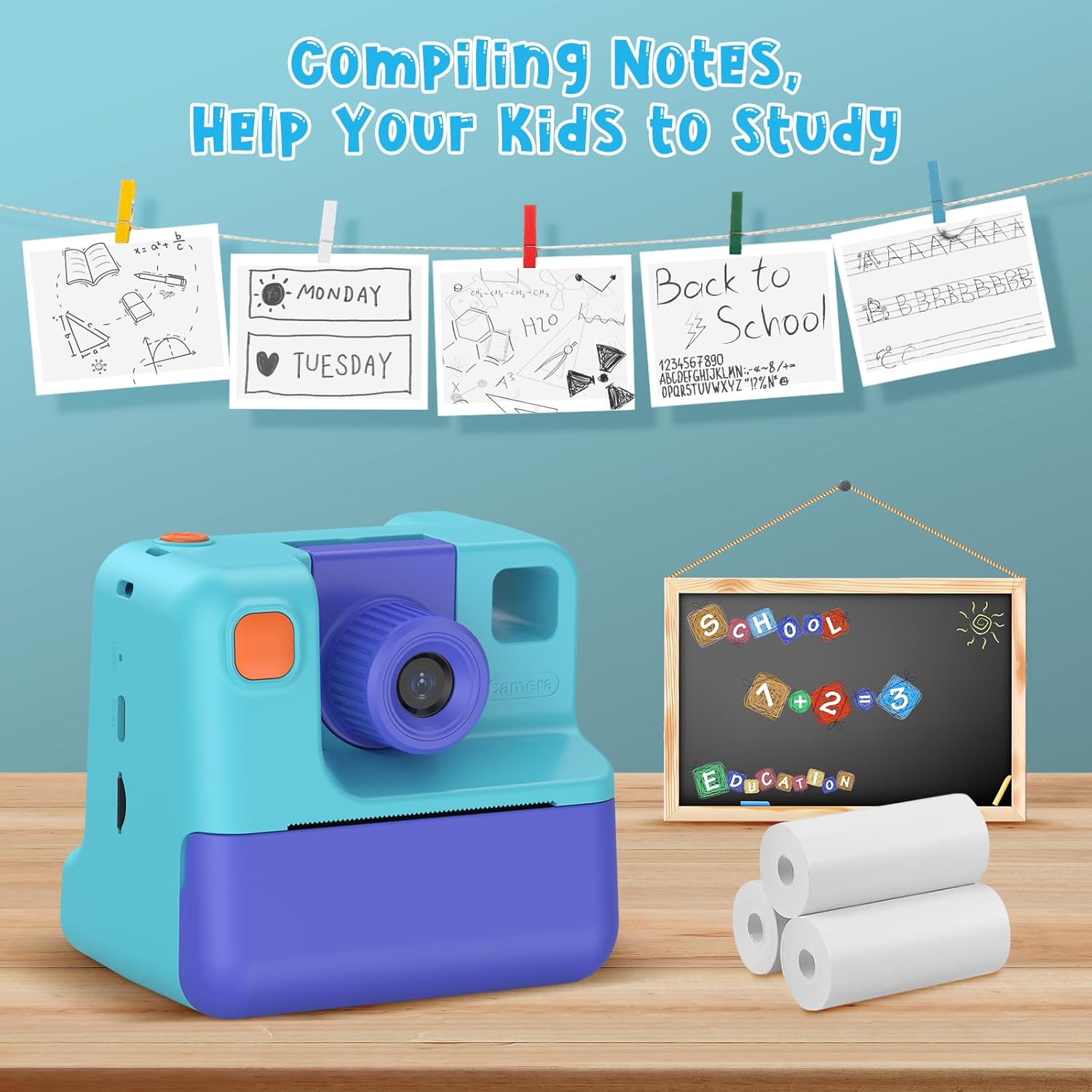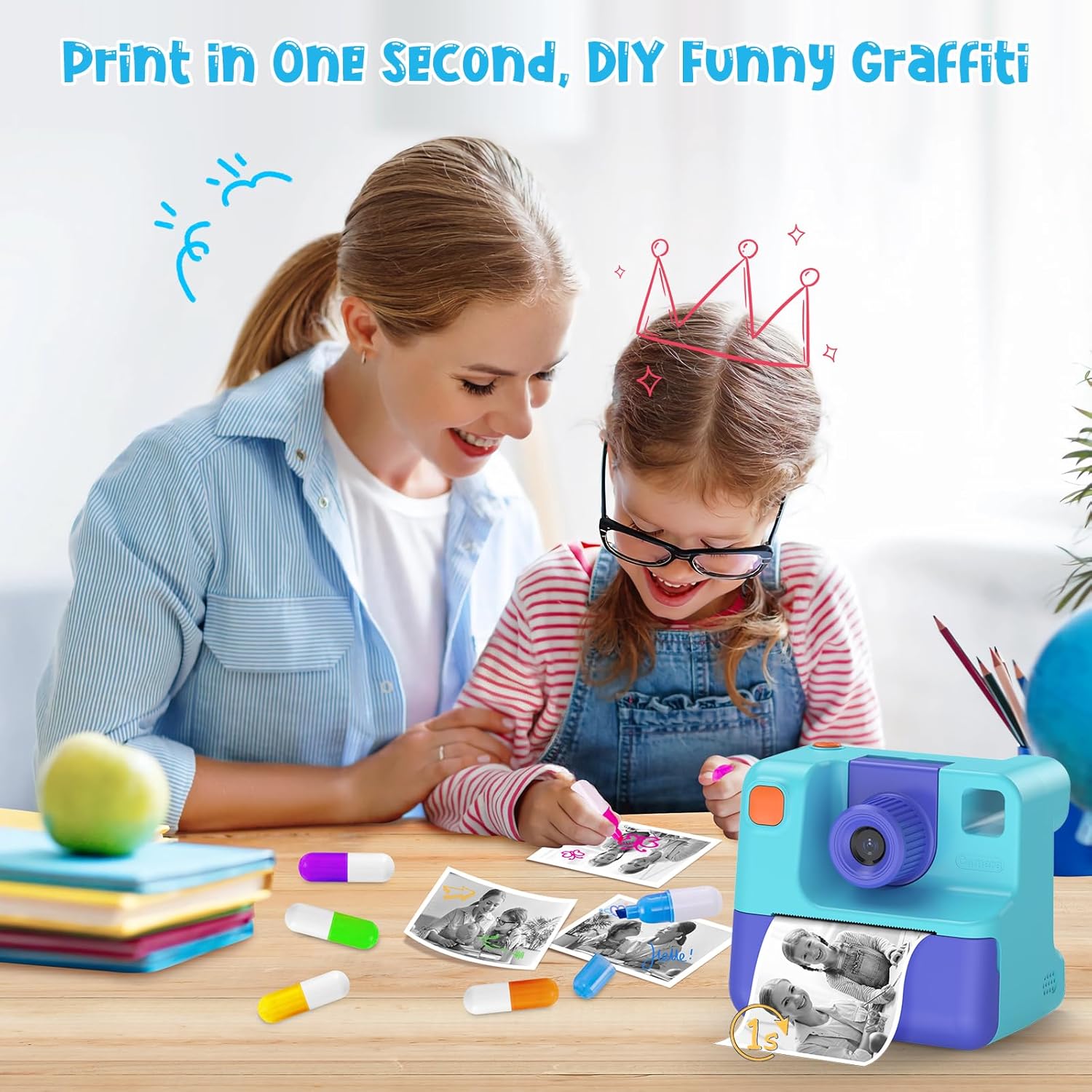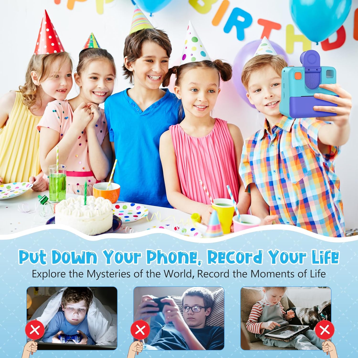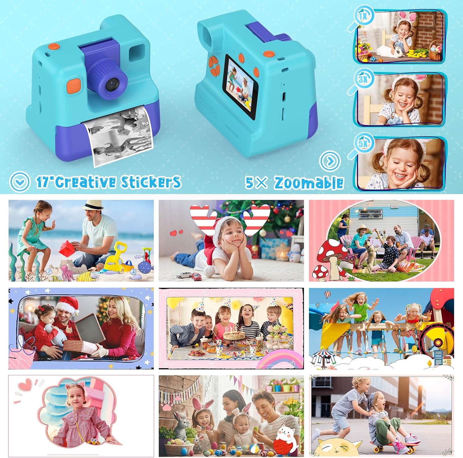 • Идеален подарък за деца: с фотоапарата за печат вашите деца могат да запечатат моментите от живота си. Това ще насърчи любопитството и интереса им към фотографията. Тази играчка фотоапарат е перфектният подарък за рожден ден, Великден, Коледа и Коледа за момчета и момичета на възраст от 3 до 12 години.