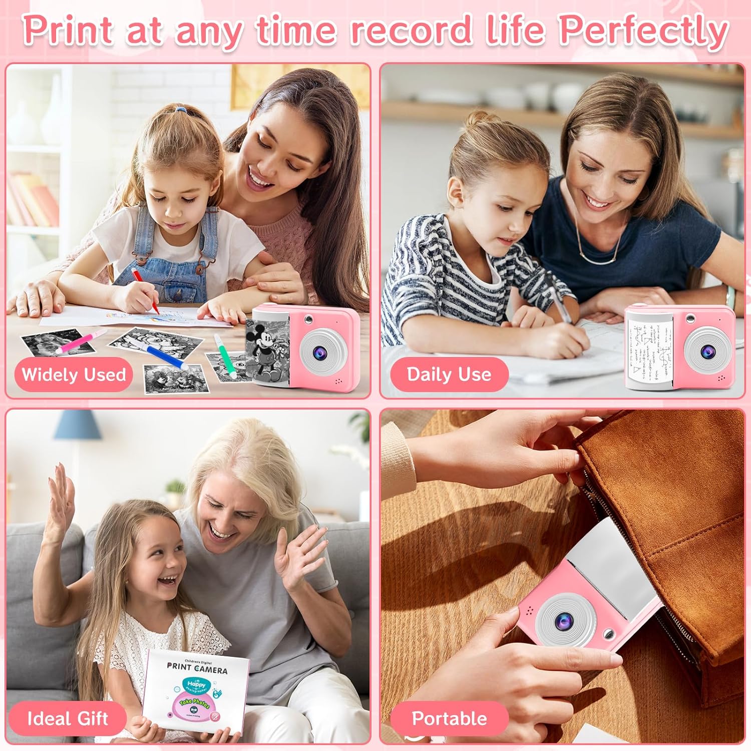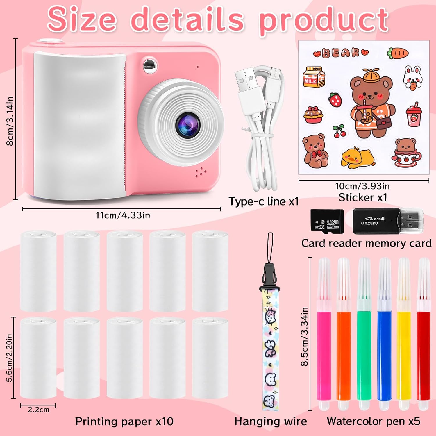 • Многофункционална камера за моментално снимане: това е добър избор за деца на възраст от 3 до 12 години. Нашата камера има 11 вида филтри за сцени. Пакетът съдържа 6 цветни химикалки и 10 ролки хартия за печат. Момчетата и момичетата могат да си правят селфита или да създават картинки за оцветяване, за да покажат въображението си.