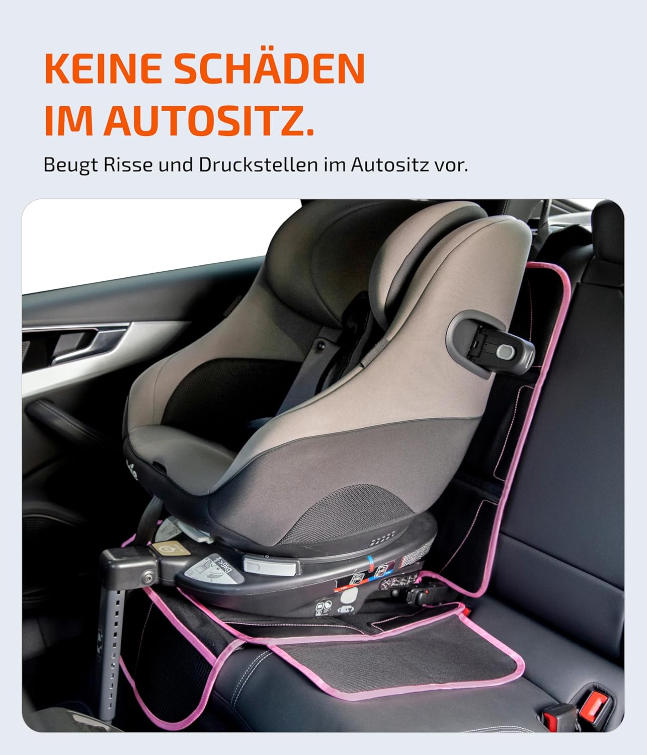 • Ефективно защитава колата ви – ще получите подплатена подложка за детска седалка с допълнителни странични езичета за по-голяма защита на седалките на колата ви.