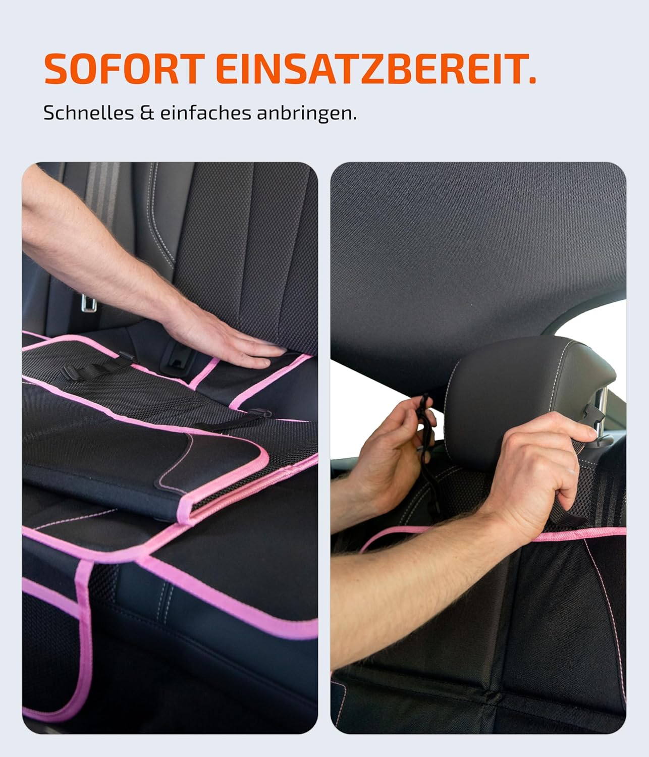 • Бърз монтаж и демонтаж: просто плъзнете средния езиче на калъфа на столчето за кола между седалката и облегалката, след което прикрепете закопчалката към облегалката за глава и сте готови.