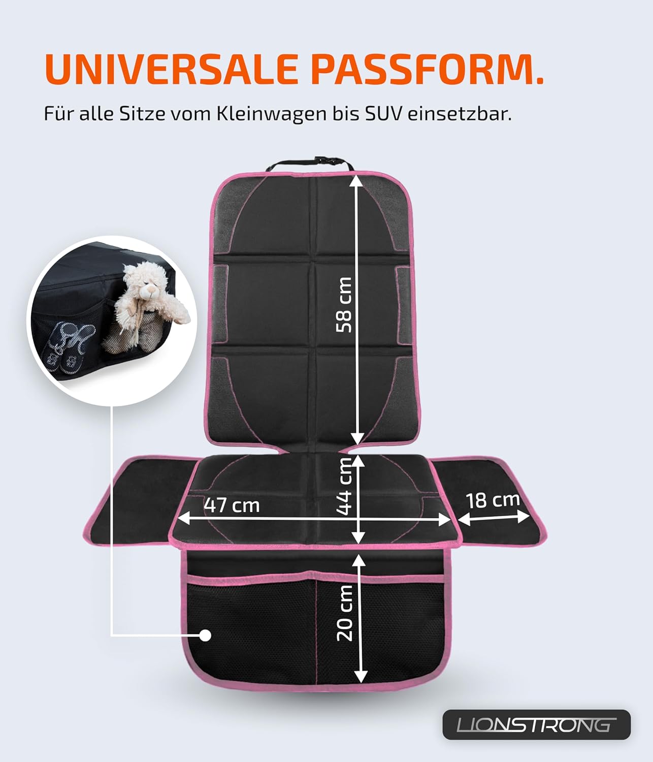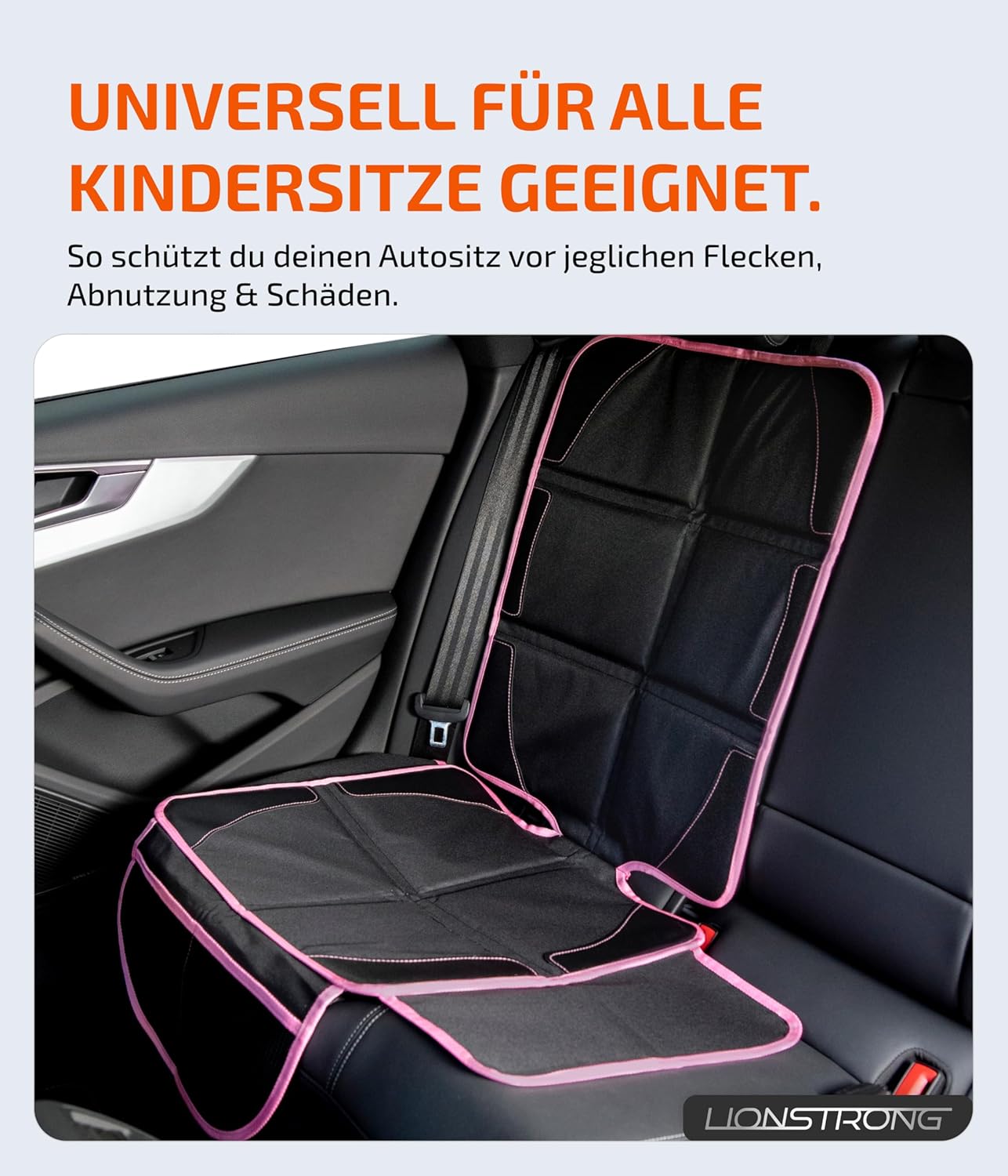 • Универсално прилягане: от малки автомобили до SUV-ове: Протекторът за седалка LIONSTRONG е съвместим с почти всички стандартни модели автомобили.