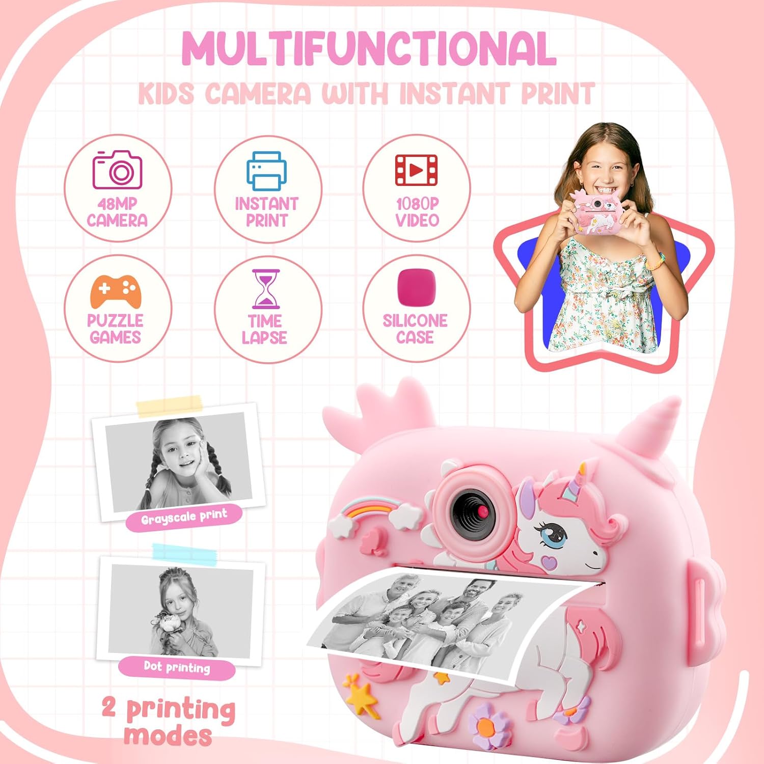 Kids Instant Print Kamera ist der beste Begleiter für Ihr Kind auf dem Weg des Erwachsenwerdens. Es zeichnet nicht nur jeden Moment des Wachstums Ihres Kindes auf, sondern inspiriert auch seine Kreativität und Fantasie. Wählen Sie es als Geschenk für Ihr Kind!