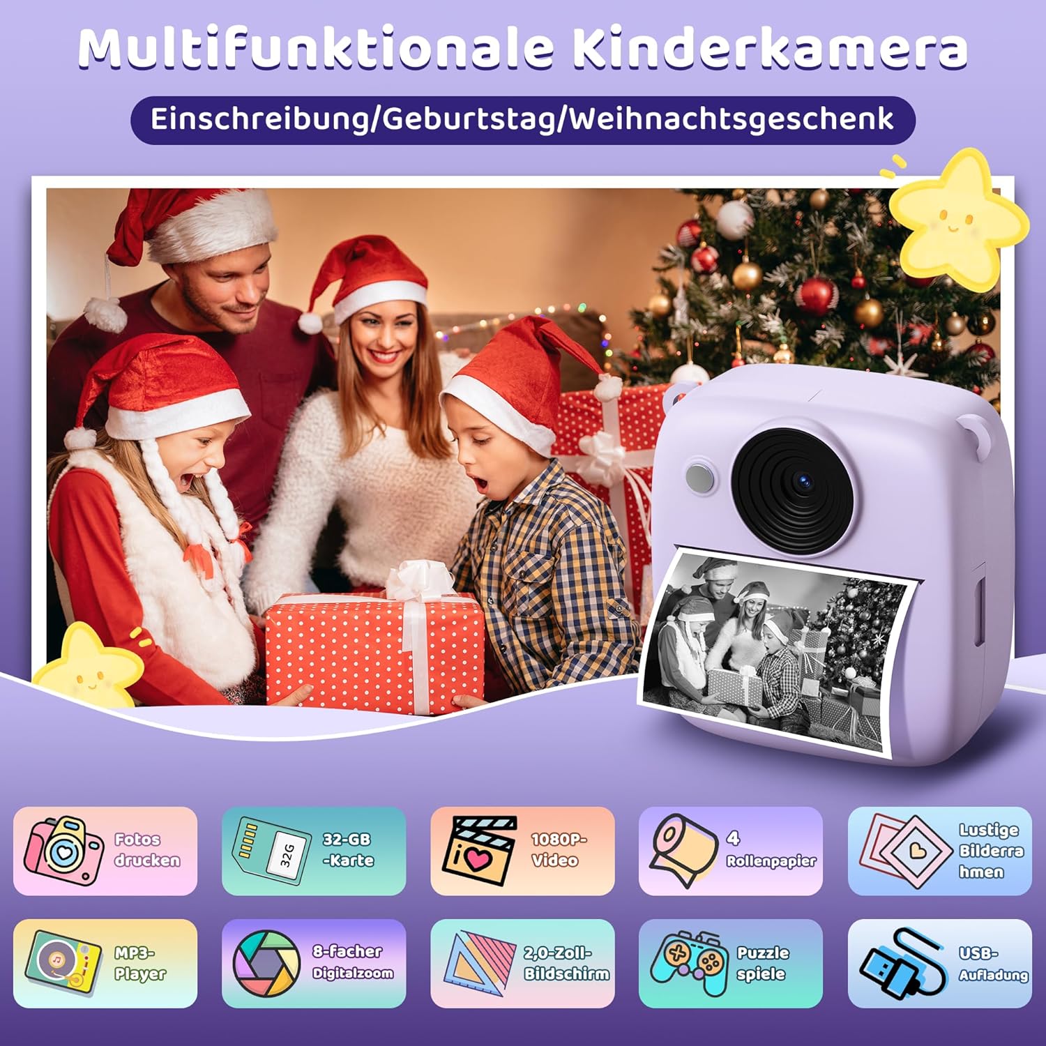 • Перфектен подарък за деца: подарък за деца на възраст от 3 до 12 години, това не е обикновен детски фотоапарат. Той може да взаимодейства с децата и да ги учи да правят снимки, за да запечатат живота си. Той е и перфектният спътник за взаимодействието родител-дете! Нека децата запечатат ценни моменти от детството си. Детски фотоапарат за моментални снимки за рождени дни, Коледа, Хелоуин и Великден.