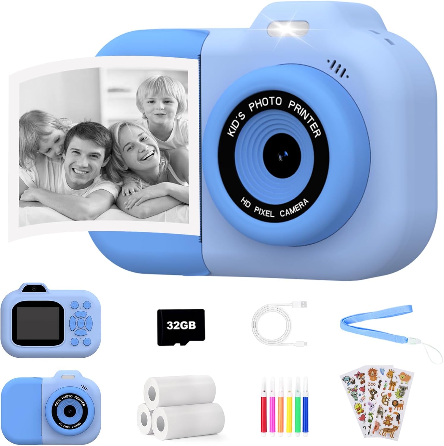 • Идеален подарък за деца на възраст 3-12 години. Чудесен коледен или рожден ден подарък за момичета и момчета. Включва 32GB карта памет, USB кабел, връзка за носене, стикери, 3 ролки хартия и 6 цветни химикалки - всичко е включено в комплекта.