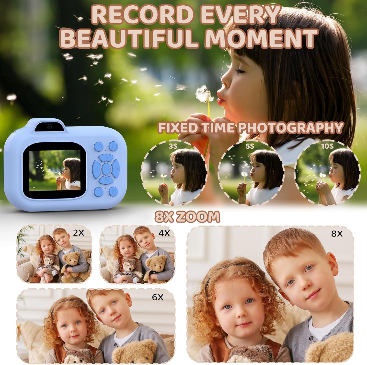 Детски фотоапарат за моментално снимане с печат, 1080P цифров фотоапарат за деца, коледен подарък за детски фотоапарат за момичета и момчета от 3 до 12 години, играчка фотоапарат за моментално снимане за 4, 5, 6, 7, 8, 9, 10, 11 и 12 години
