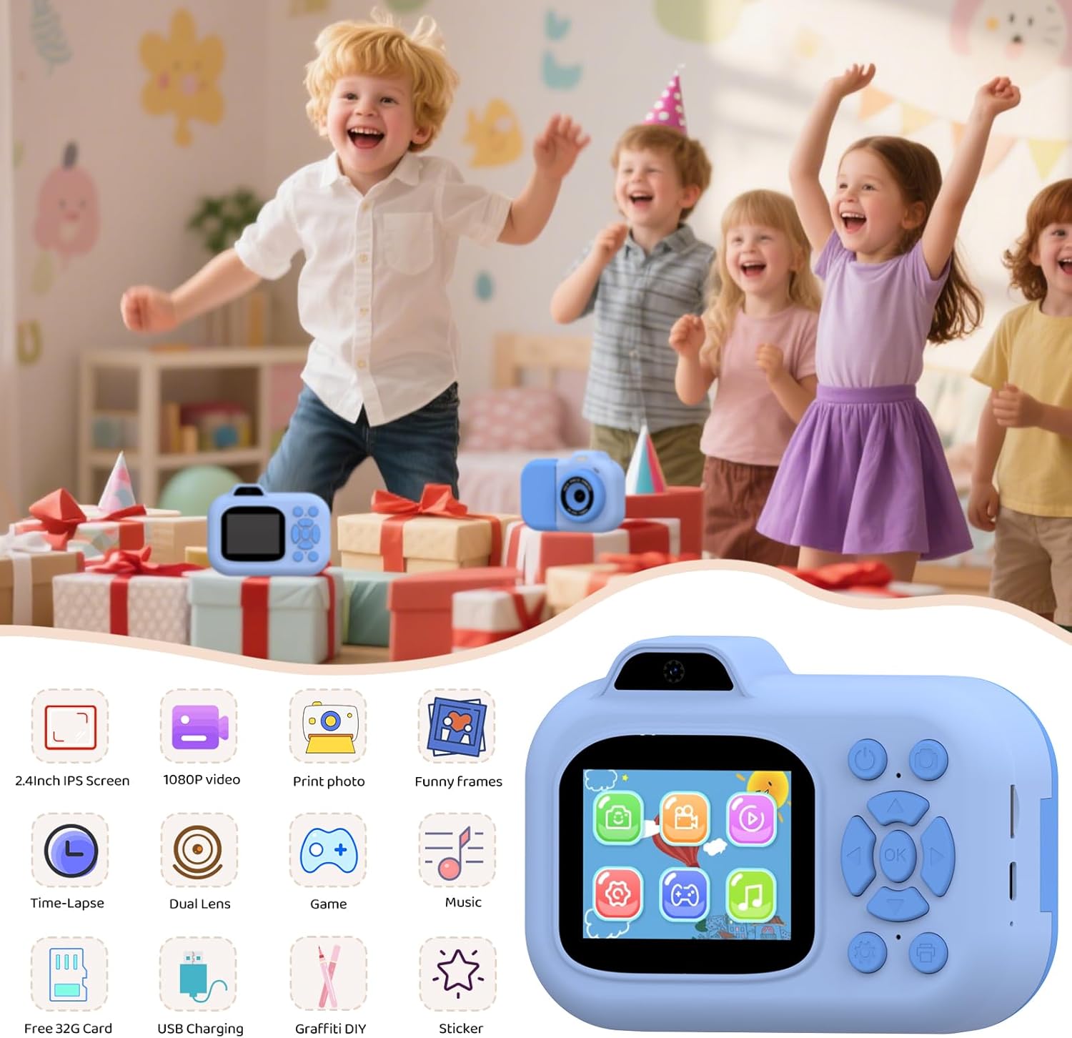 • Идеален подарък за деца на възраст 3-12 години. Чудесен коледен или рожден ден подарък за момичета и момчета. Включва 32GB карта памет, USB кабел, връзка за носене, стикери, 3 ролки хартия и 6 цветни химикалки - всичко е включено в комплекта.