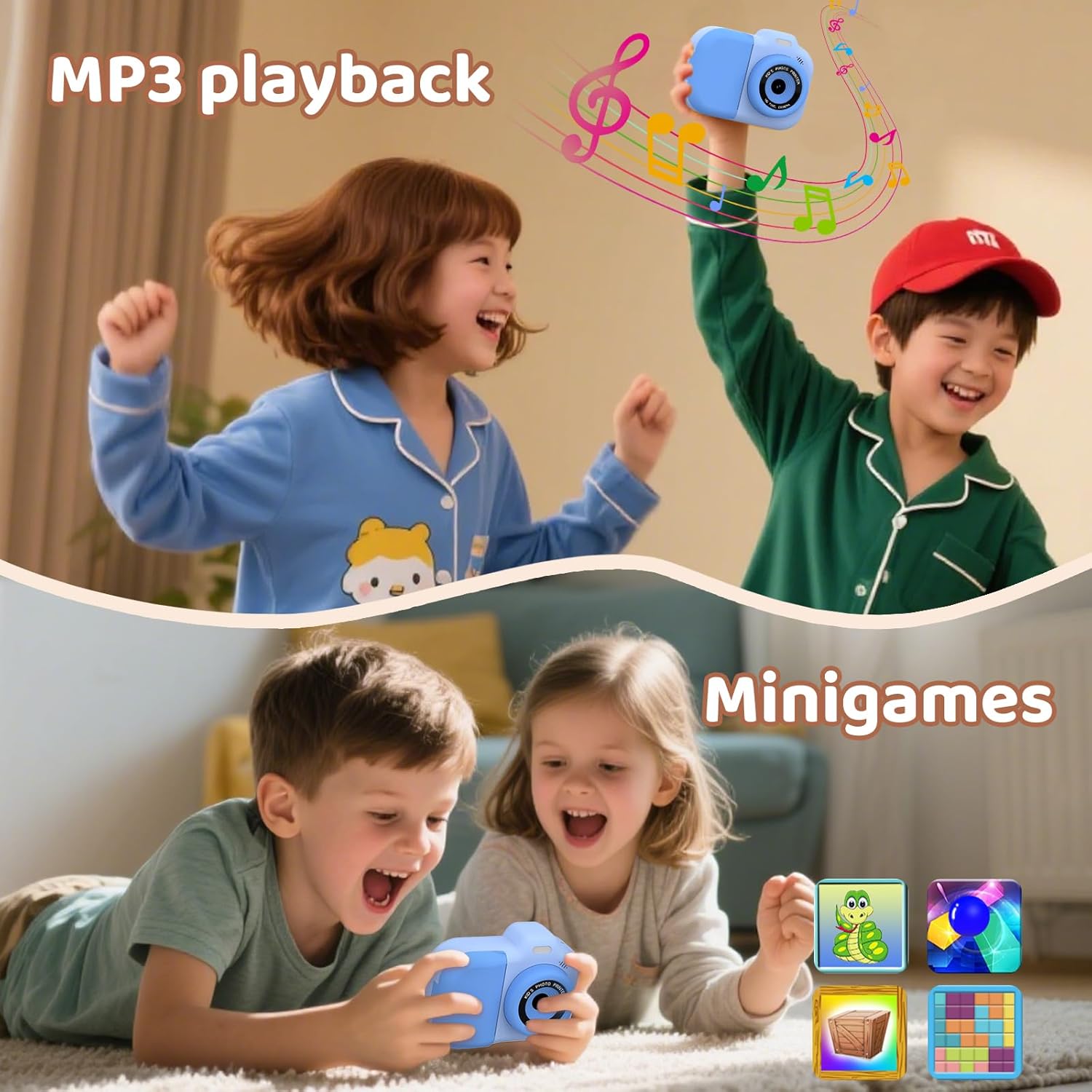 • 1080P HD и двойна камера - За снимки, селфита и видеоклипове. С предна и задна камера, цифровият фотоапарат за деца прави висококачествени снимки и 1080P видеоклипове. Идеален за селфита, семейни моменти и креативно видеозаснемане от всякакъв ъгъл.
