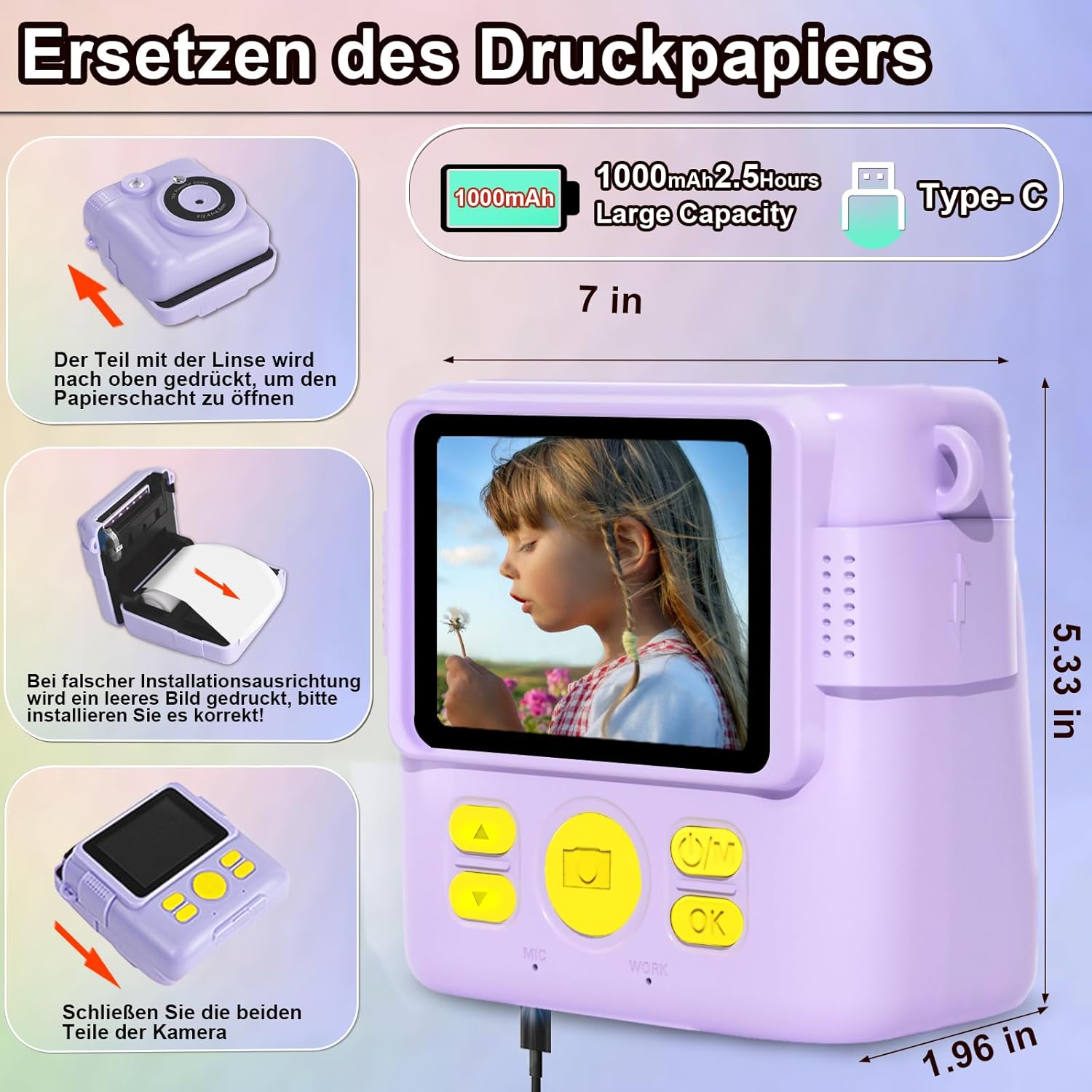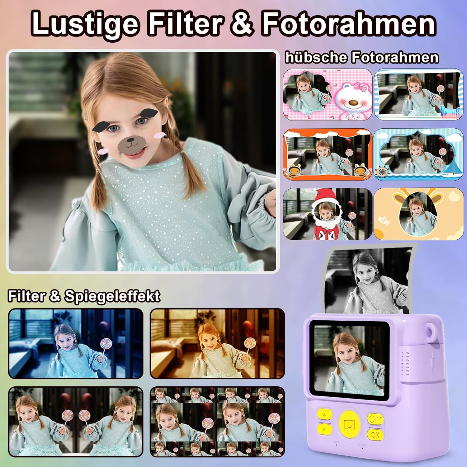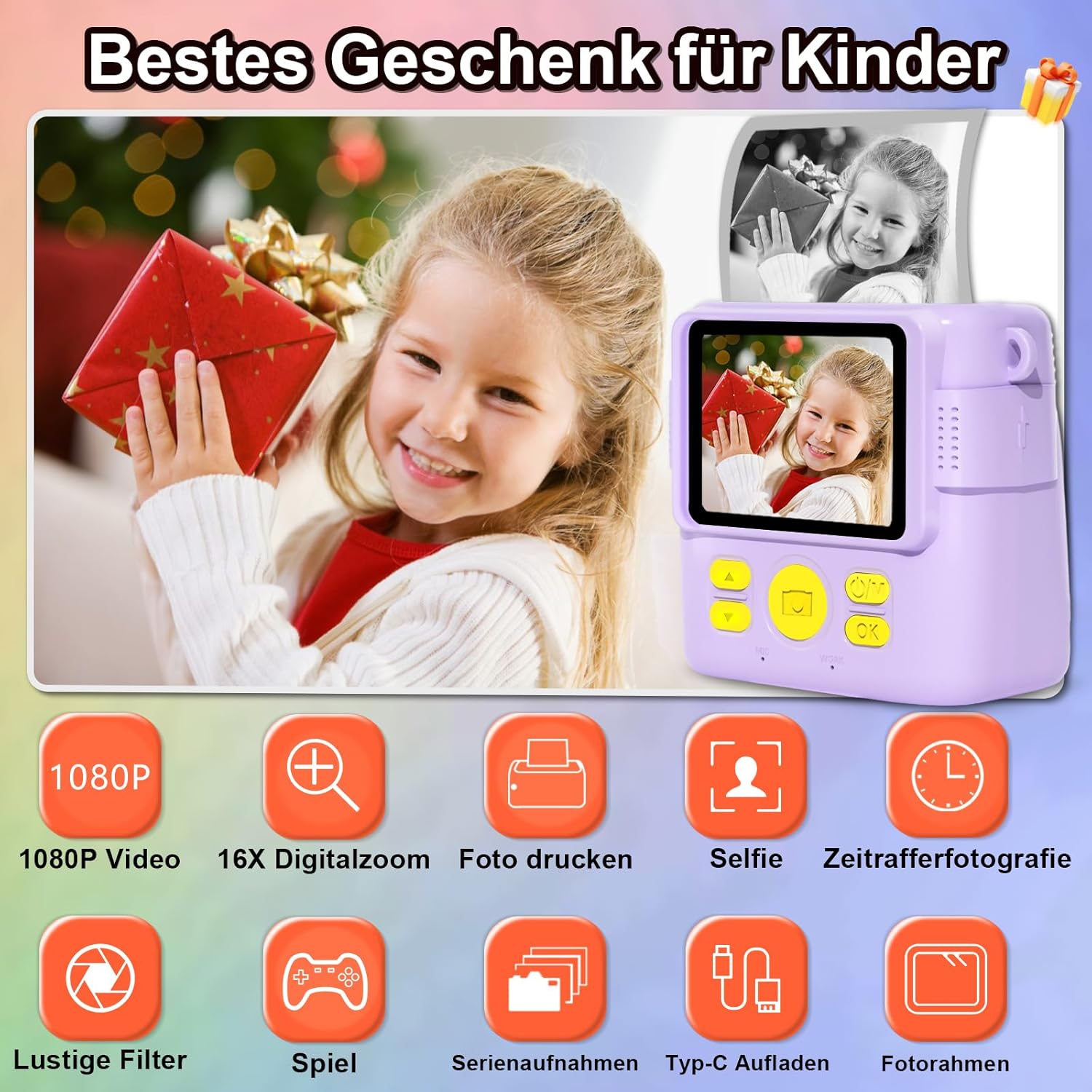 Ние сме поели ангажимент да дадем на всички деца щастливо детство. Защитете растежа на децата си и се наслаждавайте на правенето на снимки и „Направи си сам“ в нетоксична среда. Тази играчка с камера с принт е по-образователна и интерактивна. Фотографията, рисуването, музиката, видеото и игрите са любимите забавления на децата. Събрали сме ги, за да събудим желанието и интереса на децата към фотографията. Тя може да бъде чудесна изненада като подарък за рожден ден, Коледа и Деня на детето.