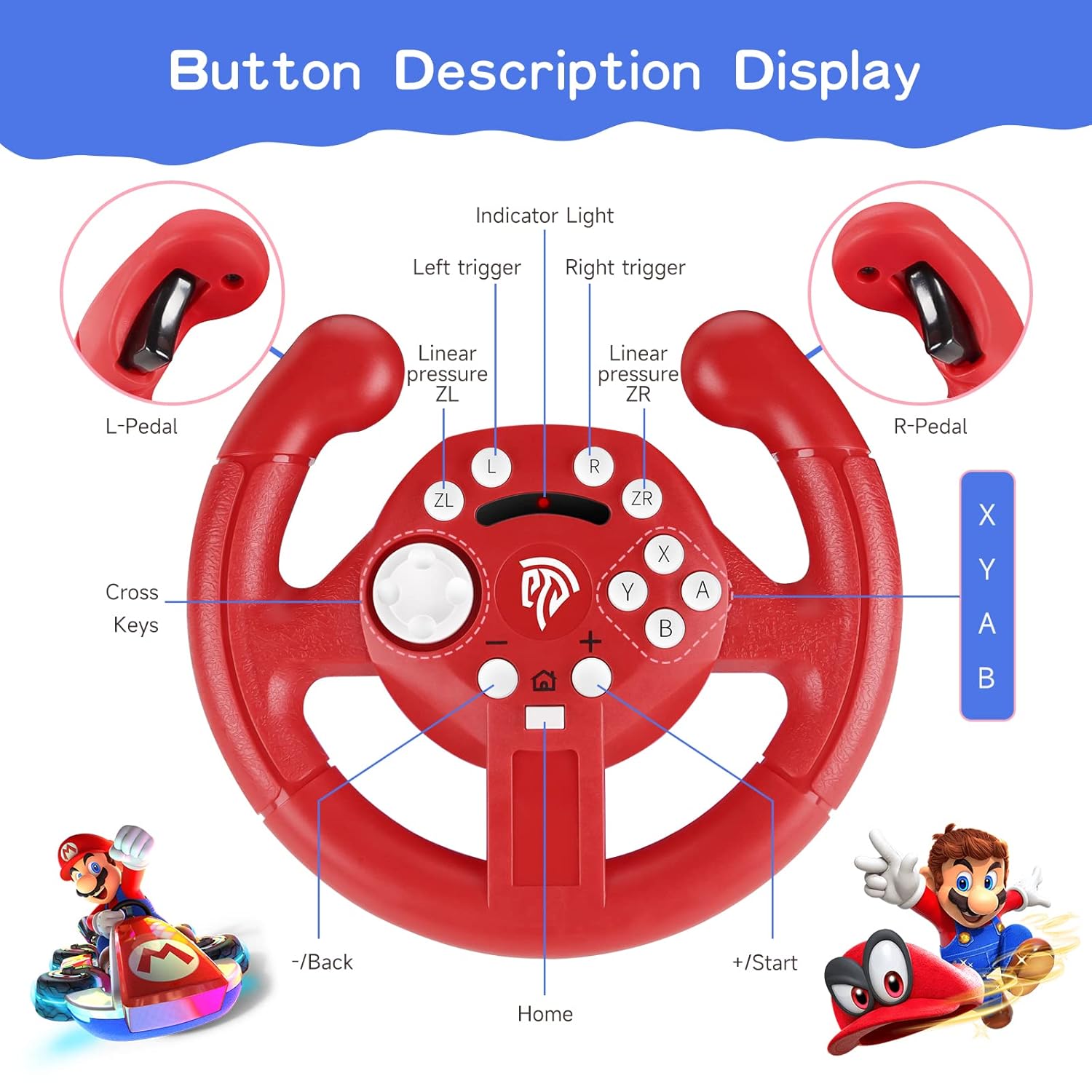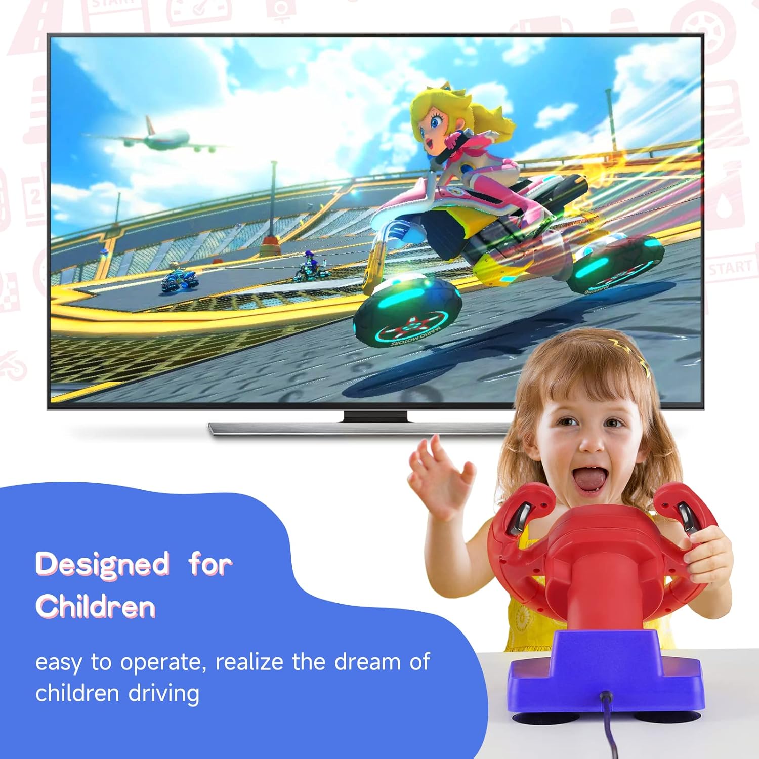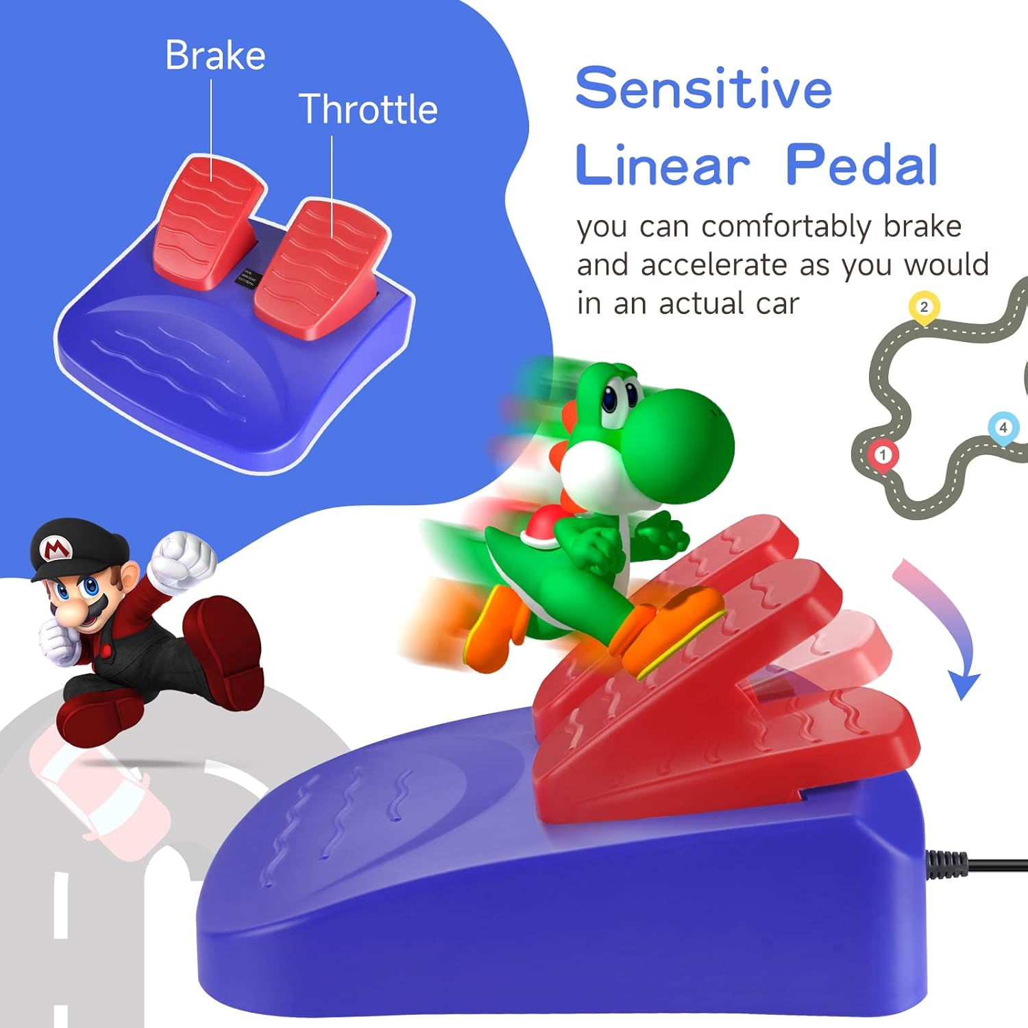Детски геймърски волан REDSTORM, състезателен волан за Nintendo Switch Mario Kart, 90-градусов състезателен волан и линейни педали, 4 Nintendo Switch/Lite/OLED/PC/PS3/Android