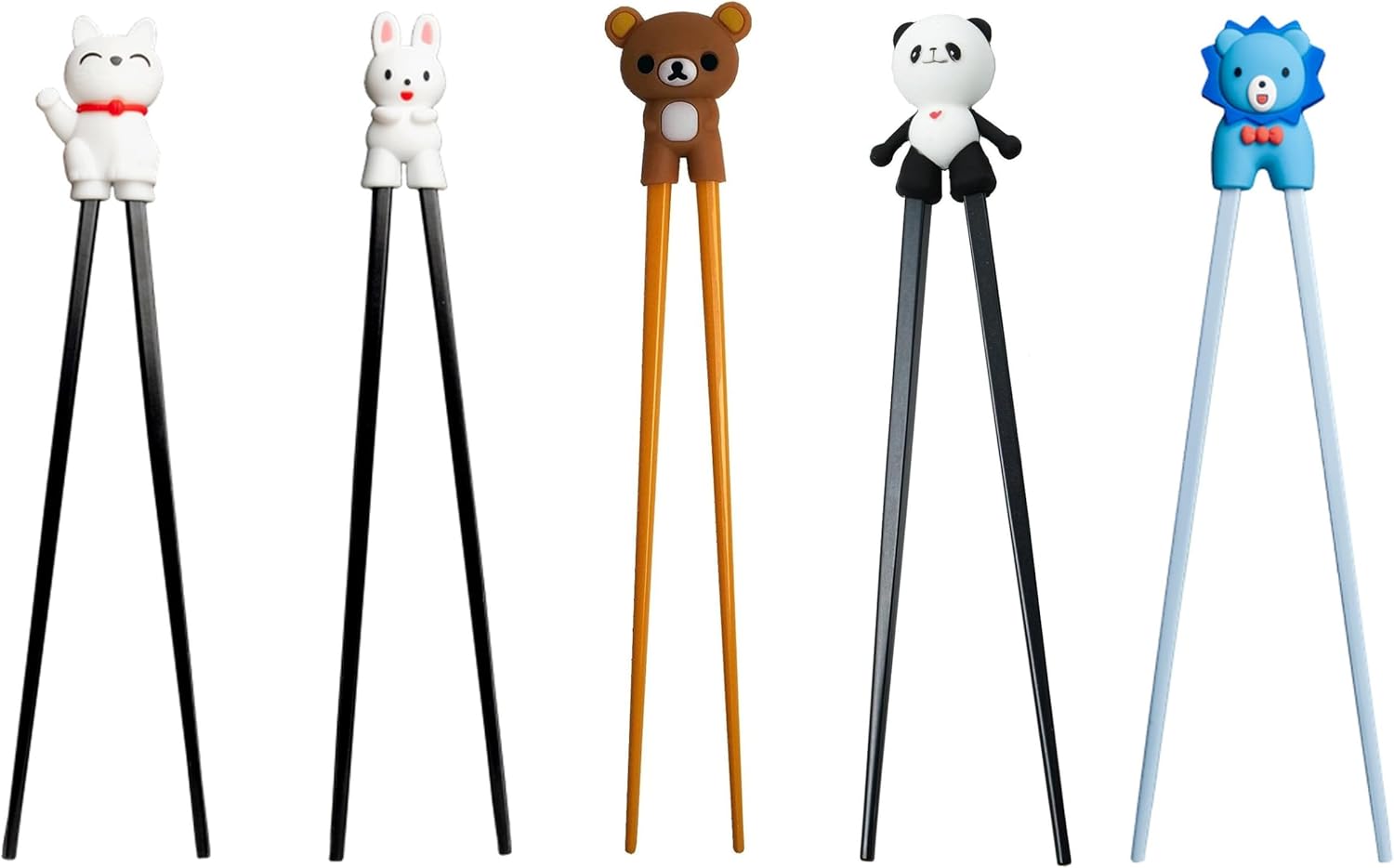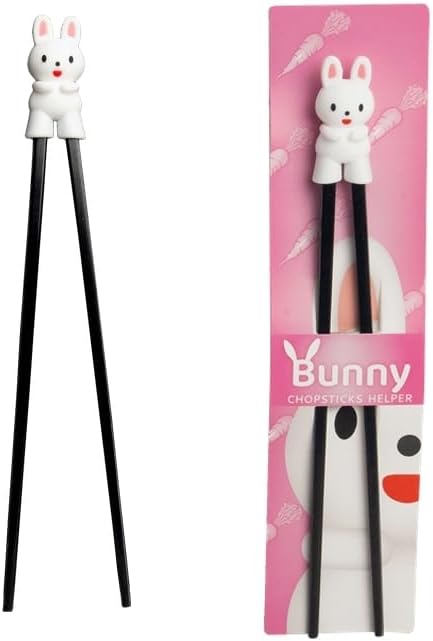 Детски клечки за хранене ESS, бели, 22 см, със сладка мечка, котка, заек, панда като държач за начинаещи, сменяеми клечки (заек)