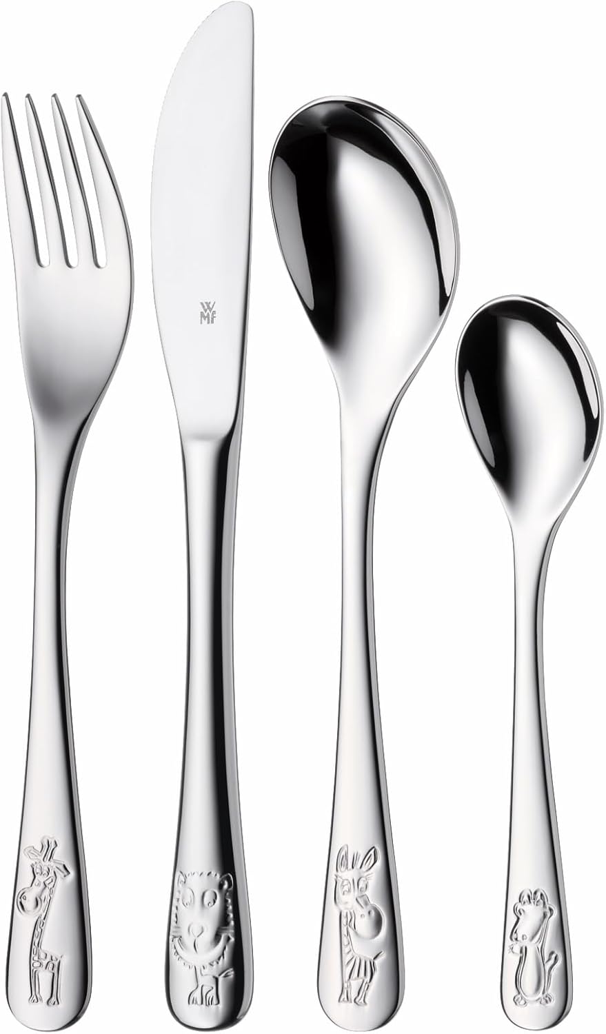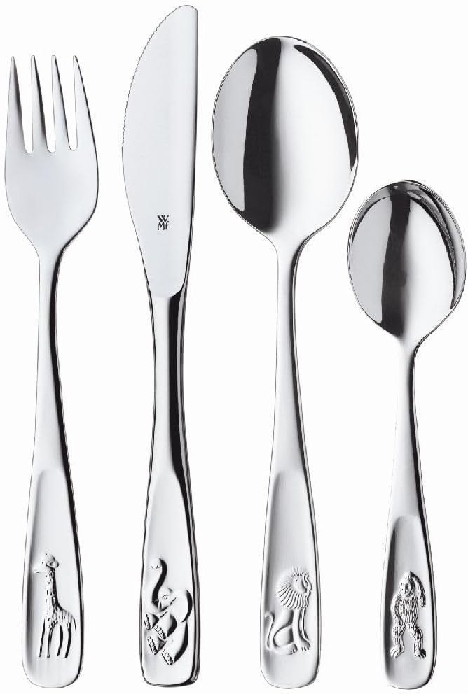 • Съдържание: Комплект детски прибори за хранене от 4 части, състоящ се от 1x детска вилица, 1x детски нож, 1x детска лъжица, 1x малка лъжичка (дължина 16,5/18,5/16,5/13,0 см) - Номер на артикула: 1280026040