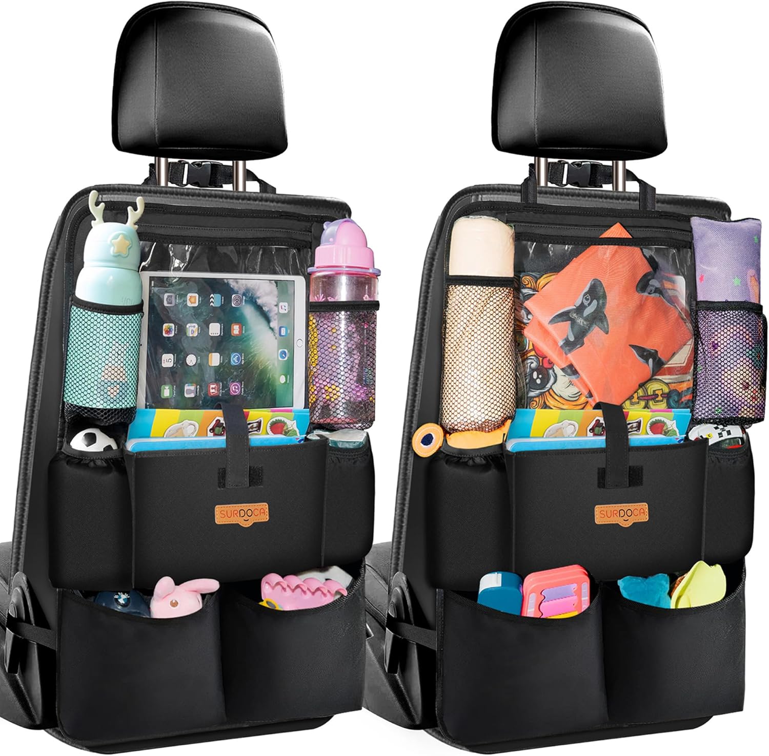 Детски органайзер за кола SURDOCA със сгъваема маса - органайзер за задната седалка с отделение за таблет с тъчскрийн, водоустойчива защита за облегалката, подходящ за повечето превозни средства