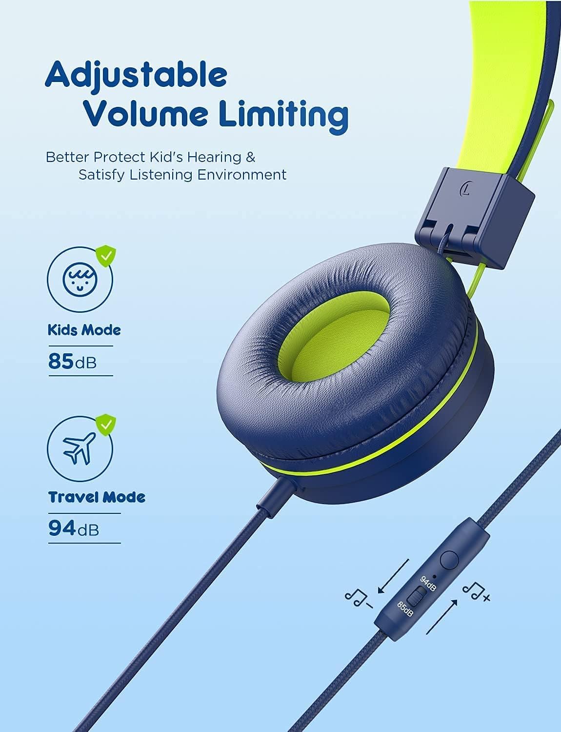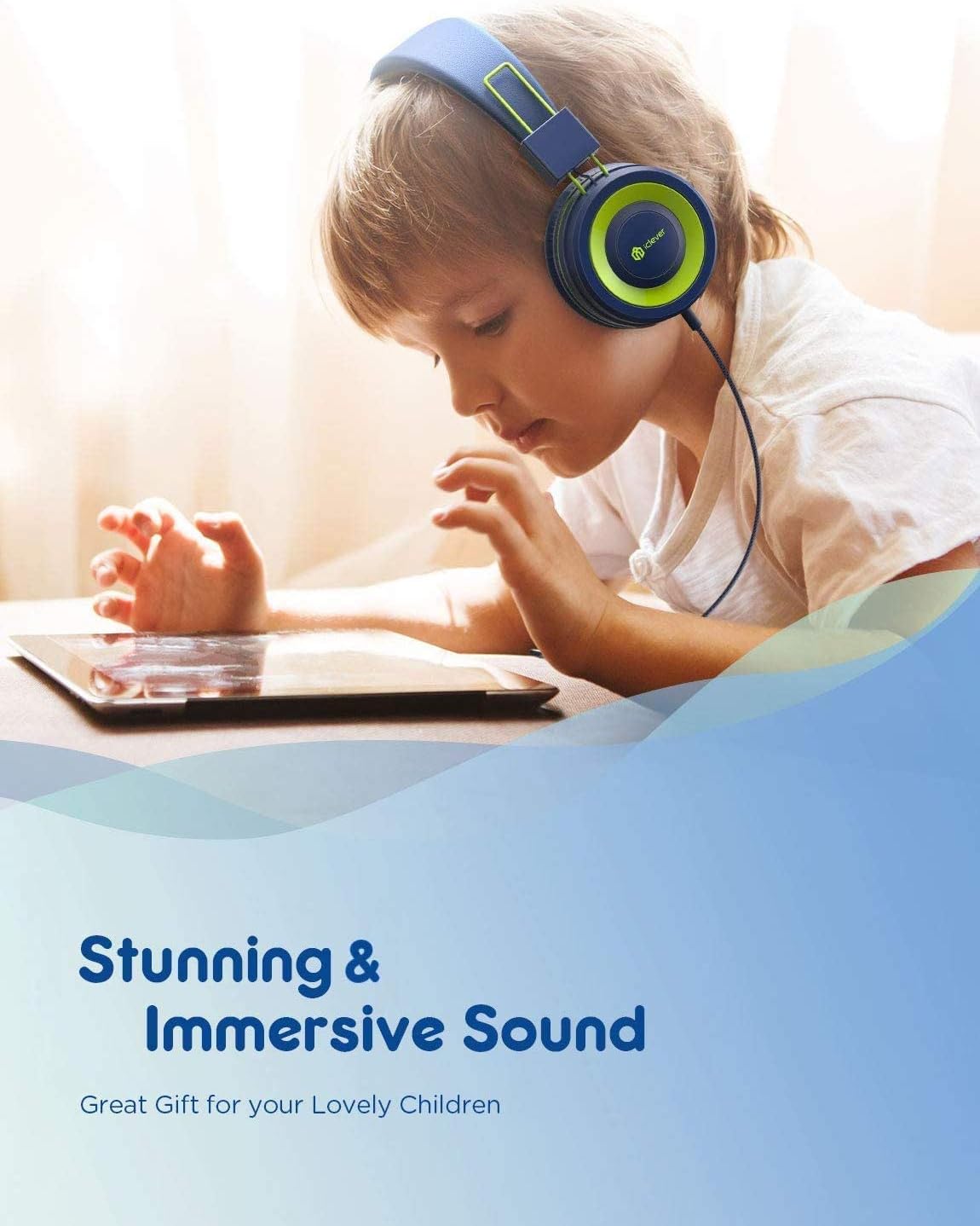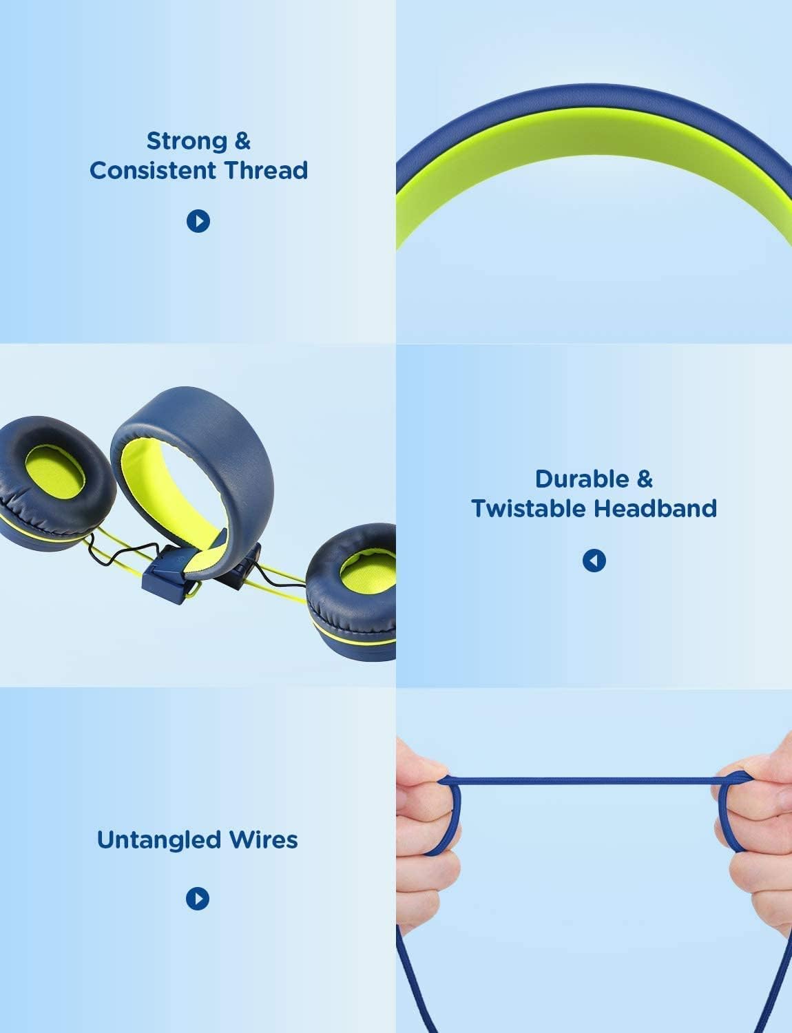 • Въртящи се на 90° наушници и удобни за носене: Меката възглавничка за главата и въртящите се на 90° наушници осигуряват удобно прилягане, идеално за дълги полети и пътувания. Регулируемата лента за глава осигурява сигурно прилягане за деца от всички възрасти – от малки деца до тийнейджъри. Слушалките за момчета и момичета са изработени от подсилени материали, така че да издържат на изпускане или огъване от деца.