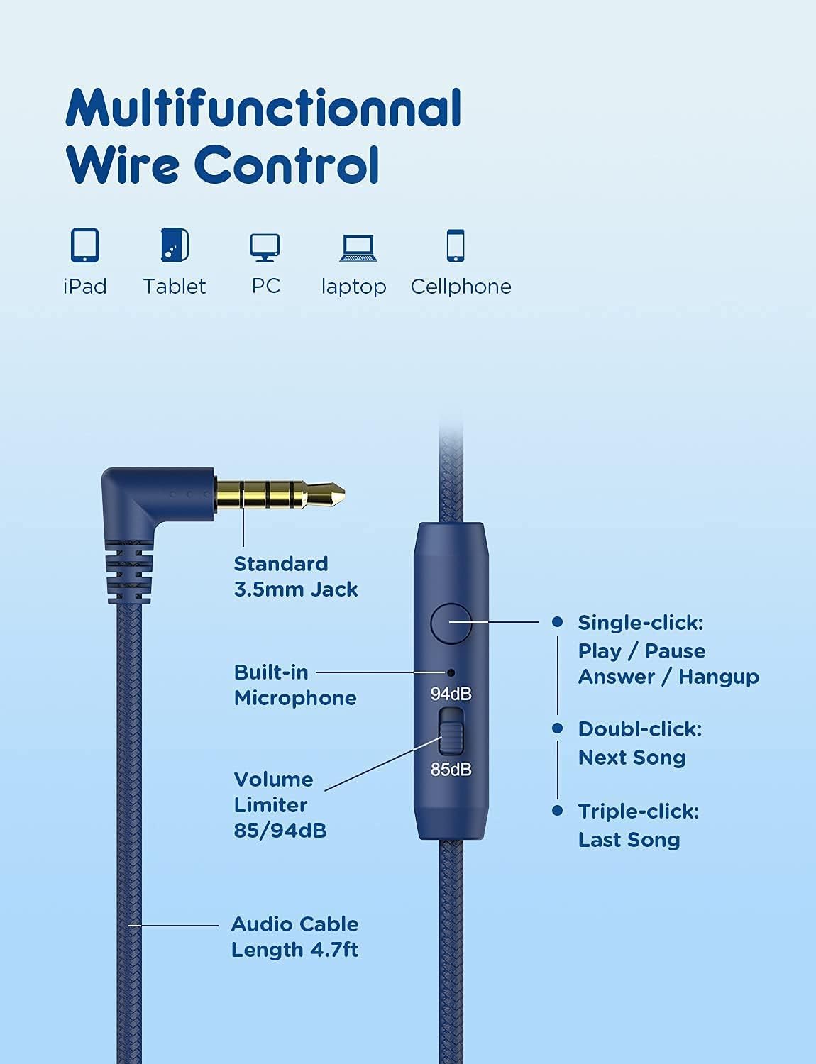 • По-безопасни слушалки за деца: Детските слушалки iClever са разработени, за да предотвратят увреждане на слуха. Те се характеризират с технология от второ поколение с безопасен лимит на силата на звука от 85 dBA, което е в съответствие с препоръките на CDC. Децата могат да слушат музика до 8 часа, без да превишават дневното ниво на шум. Това означава, че са в здравословна среда за слушане, независимо дали учат или се забавляват.