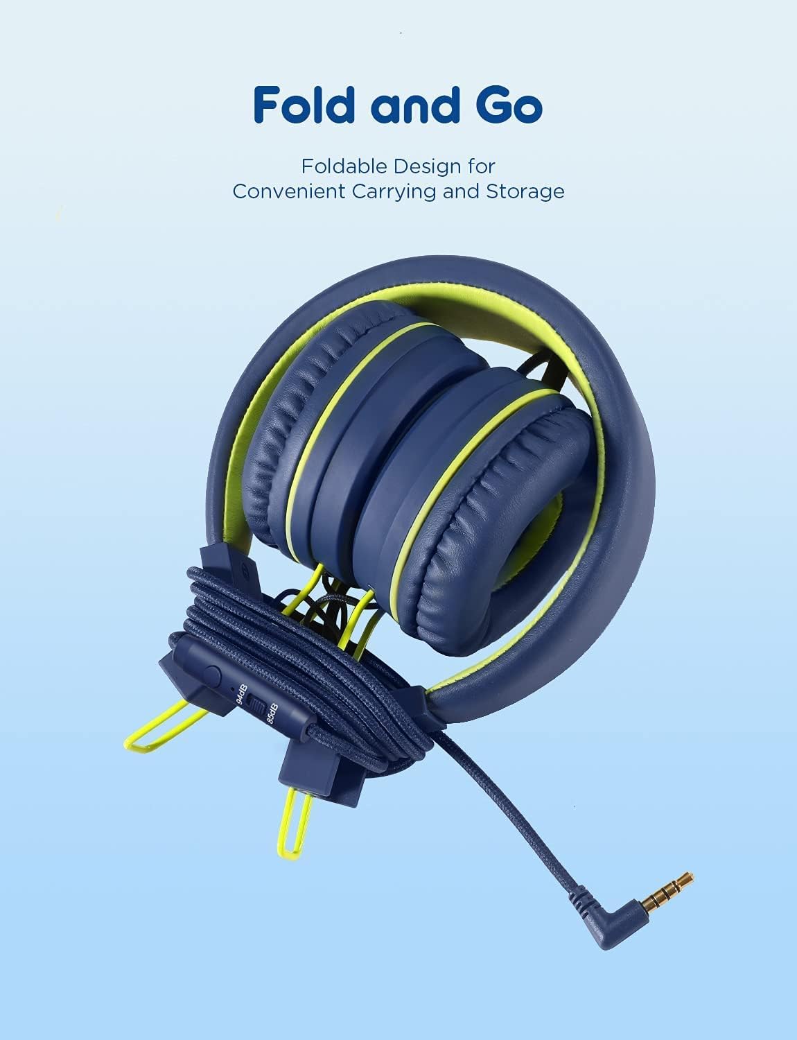 • Ултралек дизайн: Благодарение на теглото си от само 155 г, тези детски слушалки с кабел могат да се носят удобно за дълги периоди от време. А сгъваемият им дизайн позволява лесно съхранение и носене. Тези детски слушалки за училище не съдържат BPA и други вредни материали и следователно са безопасни, устойчиви и подходящи за деца.
