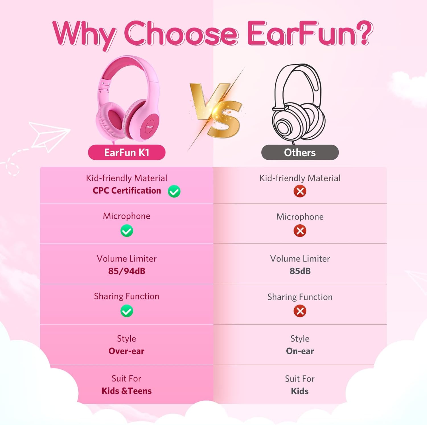 • Висококачествен стерео звук и HD микрофон, идеални за училище и онлайн обучение: 40-милиметровият драйвер и професионалната звукова настройка EarFun гарантират, че детските слушалки EarFun осигуряват звук без изкривявания.