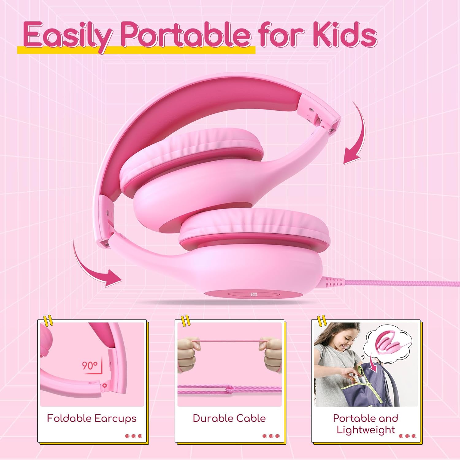 • Споделяне на звук и висока съвместимост: Детските слушалки са съвместими с всички устройства с 3,5 мм порт, като смартфони, компютри, таблети. Съвместими с iPad, Toniebox и Tiptoi химикалки. Функцията за споделяне на звук позволява на децата да се наслаждават на видеоклипове и музика заедно с приятели или семейство и да споделят радост.