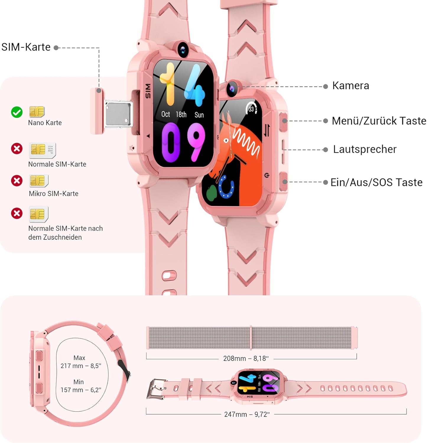 • Две каишки за часовник, различни усещания: 1,83-инчов UHD екран, предлага се с две каишки за часовник от различни материали. Мека силиконова каишка за часовник, която осигурява удобно усещане при носене и не дразни китката дори при продължително носене. Здрава плетена каишка за часовник, която е издръжлива и лесна за почистване. Идеален спътник за вашето дете, независимо дали в ежедневието или по време на приключения на открито.