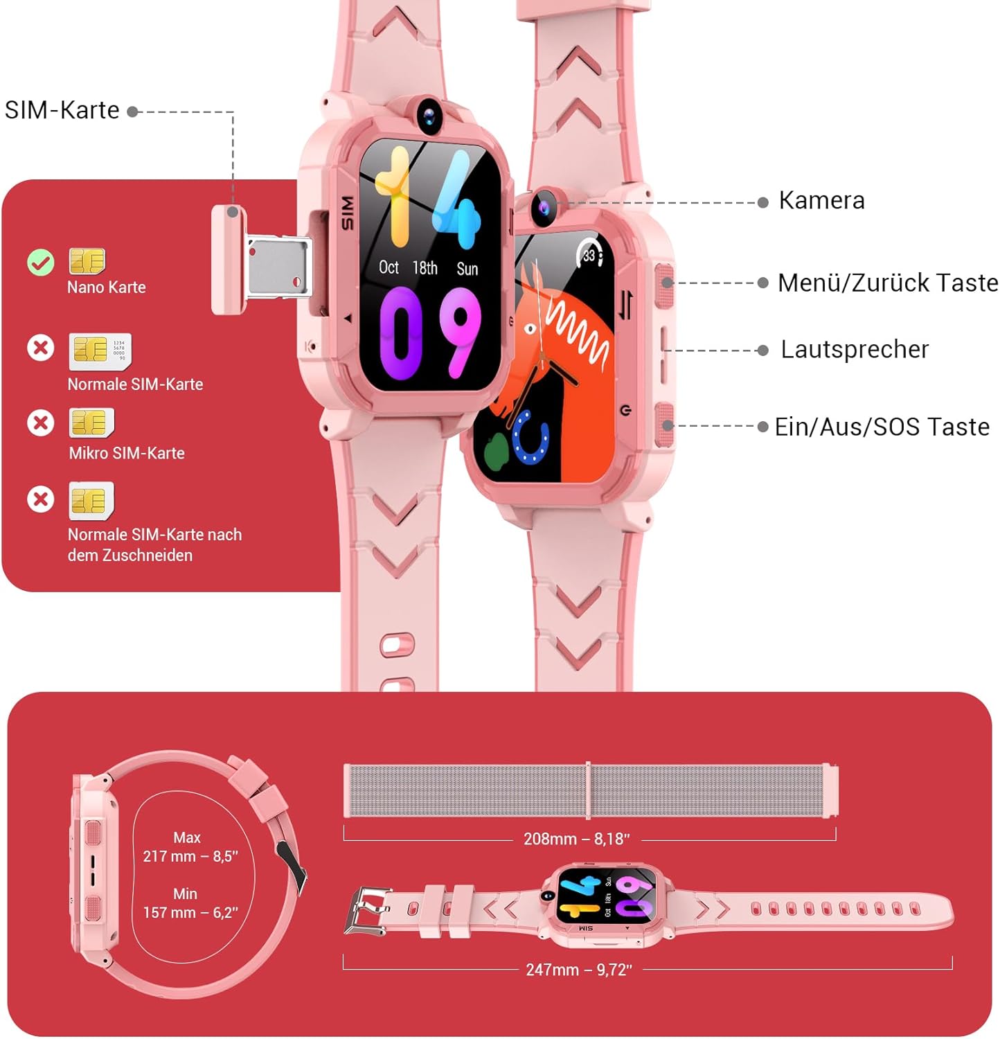• Две каишки за часовник, различни усещания: 1,83-инчов UHD екран, предлага се с две каишки за часовник от различни материали. Мека силиконова каишка за часовник, която осигурява удобно усещане при носене и не дразни китката дори при продължително носене. Здрава плетена каишка за часовник, която е издръжлива и лесна за почистване. Идеален спътник за вашето дете, независимо дали в ежедневието или по време на приключения на открито.