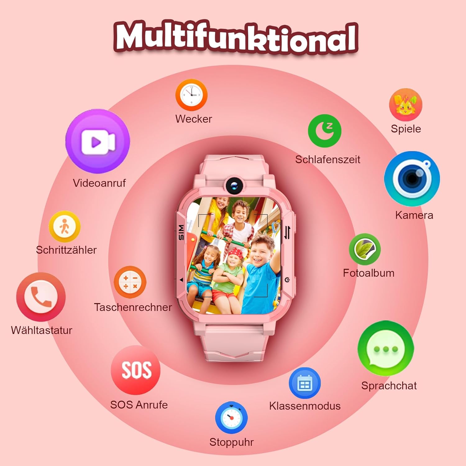 Детски смарт часовник Blackview с възможност за поставяне на SIM карта, LBS + WiFi + GPS тракер, часовник с 4G функции, SOS спешно повикване, телефонно повикване, видео разговори, гласов чат, SMS, училищен режим, детски часовник за...