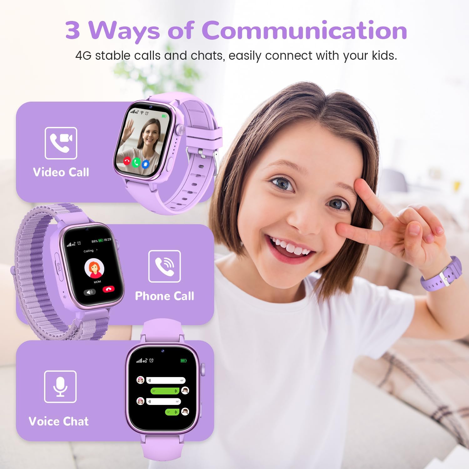 Детски смарт часовник JoJoego с GPS и телефон, 4G детски часовник с видео разговори, повикване, SOS, училищен режим, гласов чат, будилник, SIM карта, водоустойчив крачкомер IP68, подарък за момичета/момчета, лилав