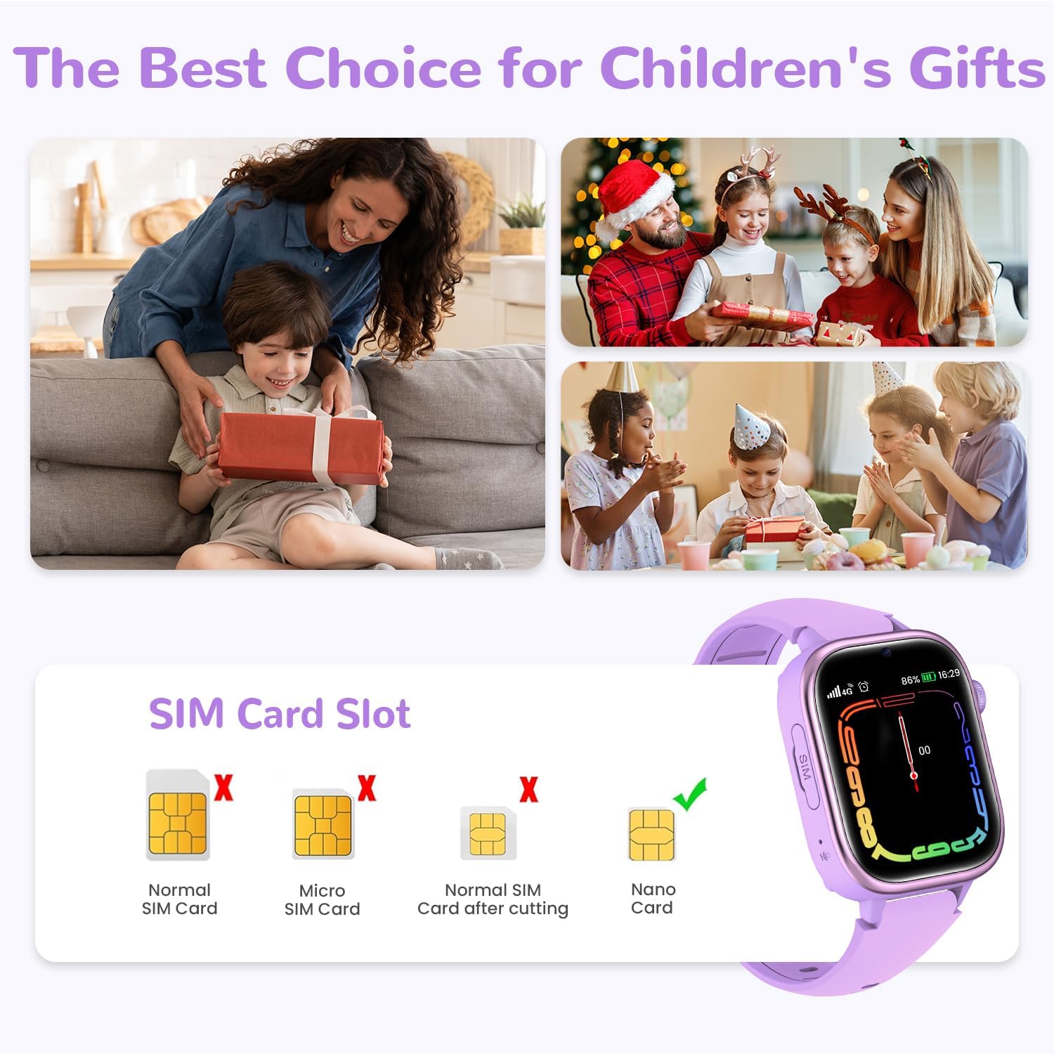 • ️ Забележка: Детският смарт часовник JoJoego не съдържа SIM карта. Моля, изключете смарт часовника, преди да поставите Nano 4G SIM картата. След това рестартирайте детския часовник и изчакайте иконата за сигнал да се появи, преди да осъществявате/отговаряте на повиквания. Не използвайте този смарт часовник в сауна или под горещ душ.