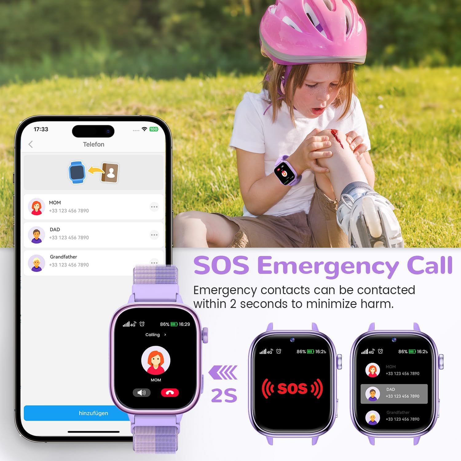 • Идеален подарък за деца: този детски смарт часовник със SIM карта се предлага с 2 каишки (от нежен към кожата силикон/дишаща материя), които могат да се сменят в зависимост от сезона и повода. Батерията от 700mAh издържа до 2-3 дни при нормална употреба, елиминирайки ежедневното зареждане. Този смарт часовник предлага както практичност, така и функции за безопасност и е идеален като подарък за рождени дни, Коледа или завръщане в училище.