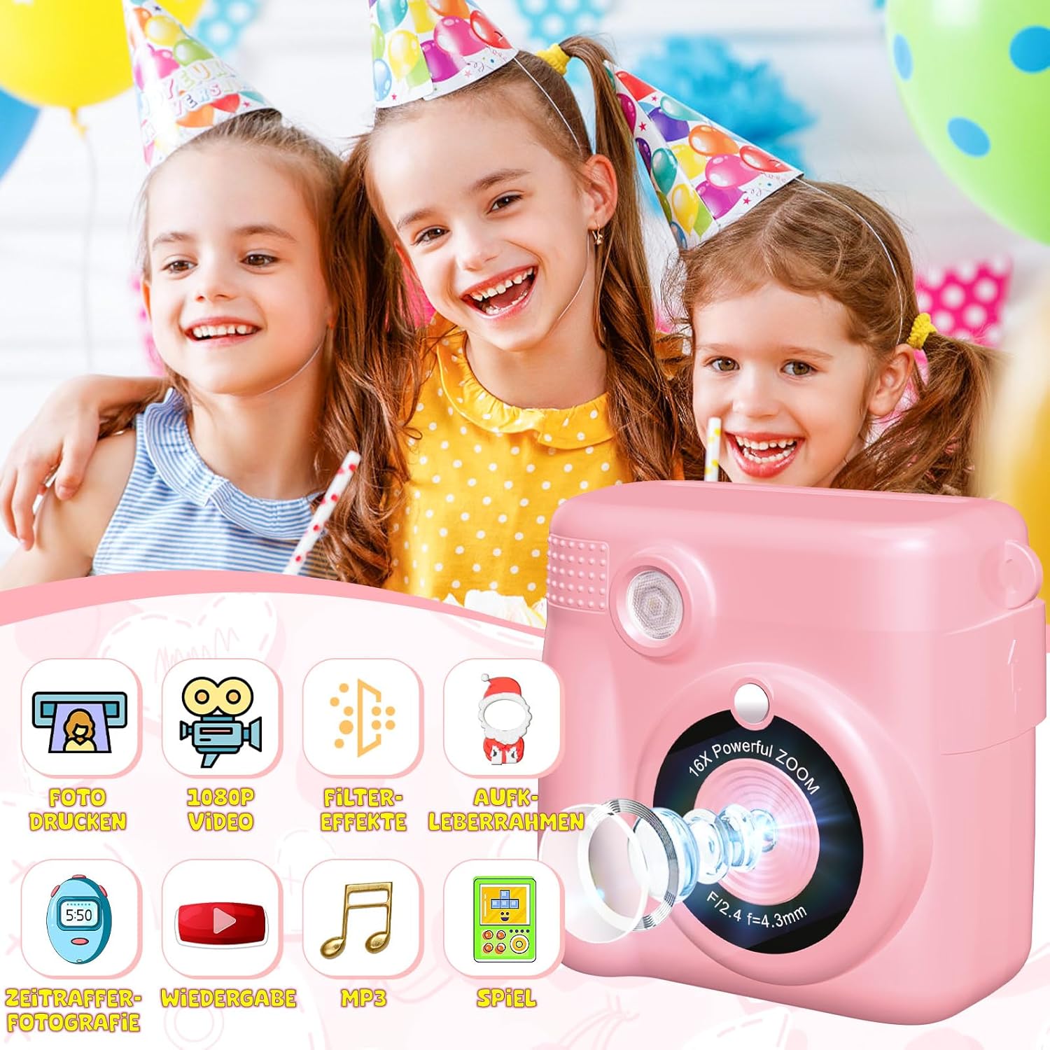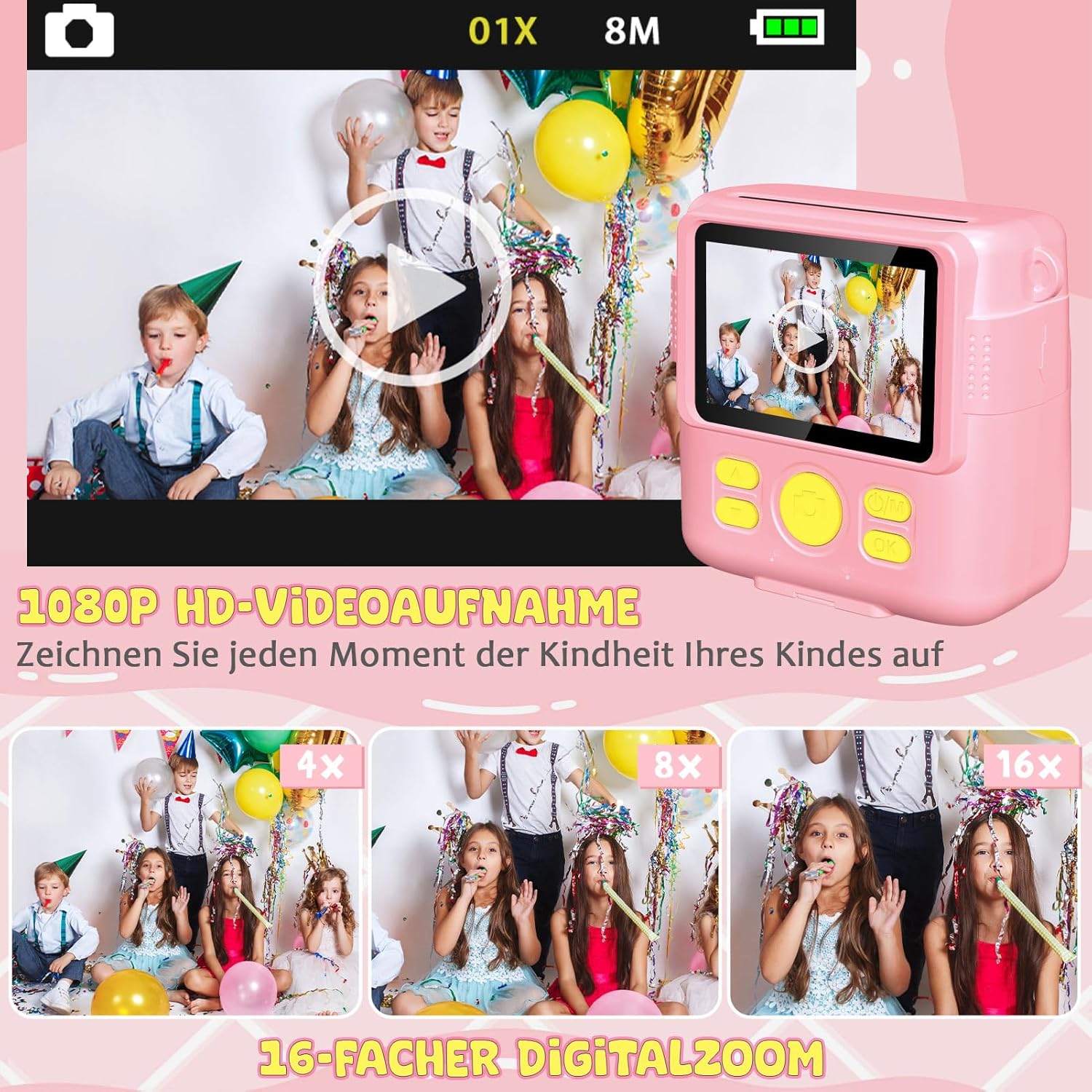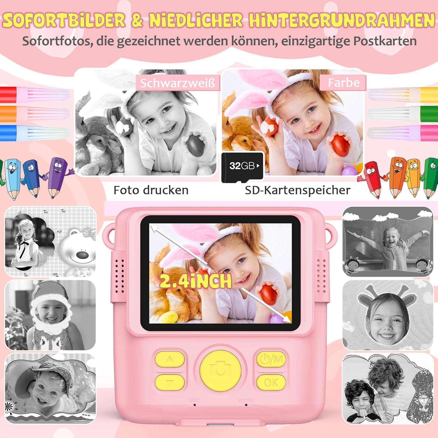 • Детски фотоапарат за моментално заснемане: изработен от висококачествен ABS материал, устойчив на удар, нетоксичен и екологичен, чудесен подарък за деца. Включената ролка термохартия позволява до 80 разпечатки и е с възможност за многократно зареждане. Цифров фотоапарат за деца на възраст 3-12 години. Това е категория детски фотоапарат играчки (не е висок клас фотоапарат).