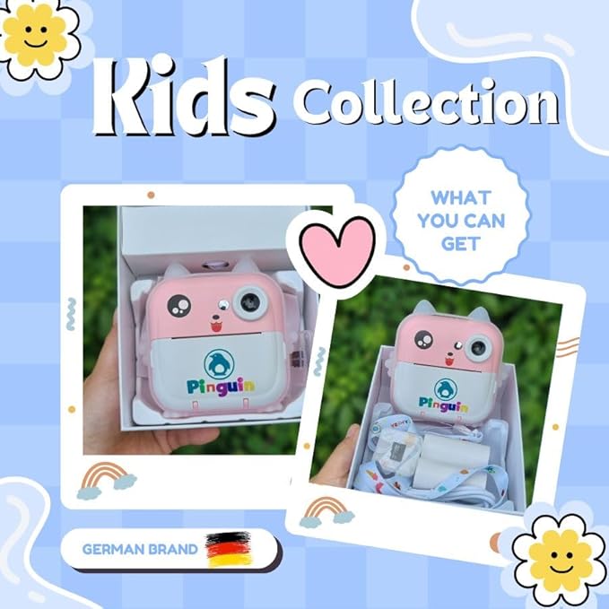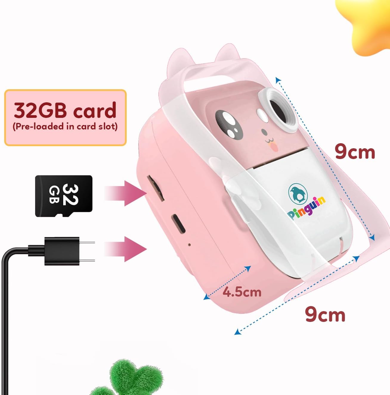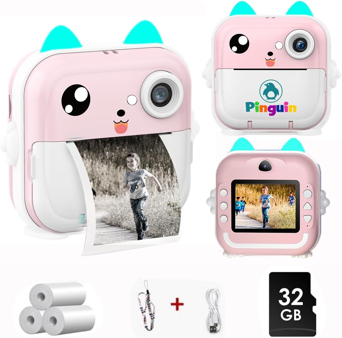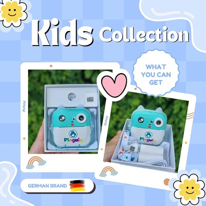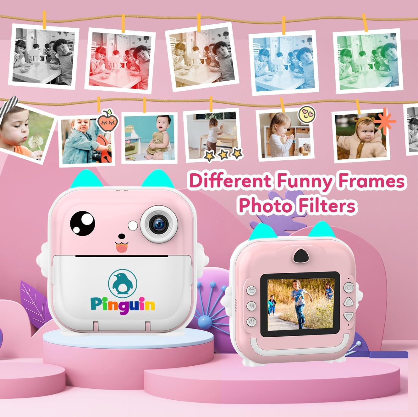 • Детски фотоапарат за моментално печатане: този дигитален детски фотоапарат предлага възможност за незабавно отпечатване на детски снимки. Специално проектиран за деца на възраст от 3 до 12 години, този детски фотоапарат ви позволява лесно да отпечатвате черно-бели снимки в реално време, без мастило. Включени са три ролки хартия за печат (едната ролка е вече инсталирана във фотоапарата), така че децата могат веднага да изпитат радостта от моменталното печатане.