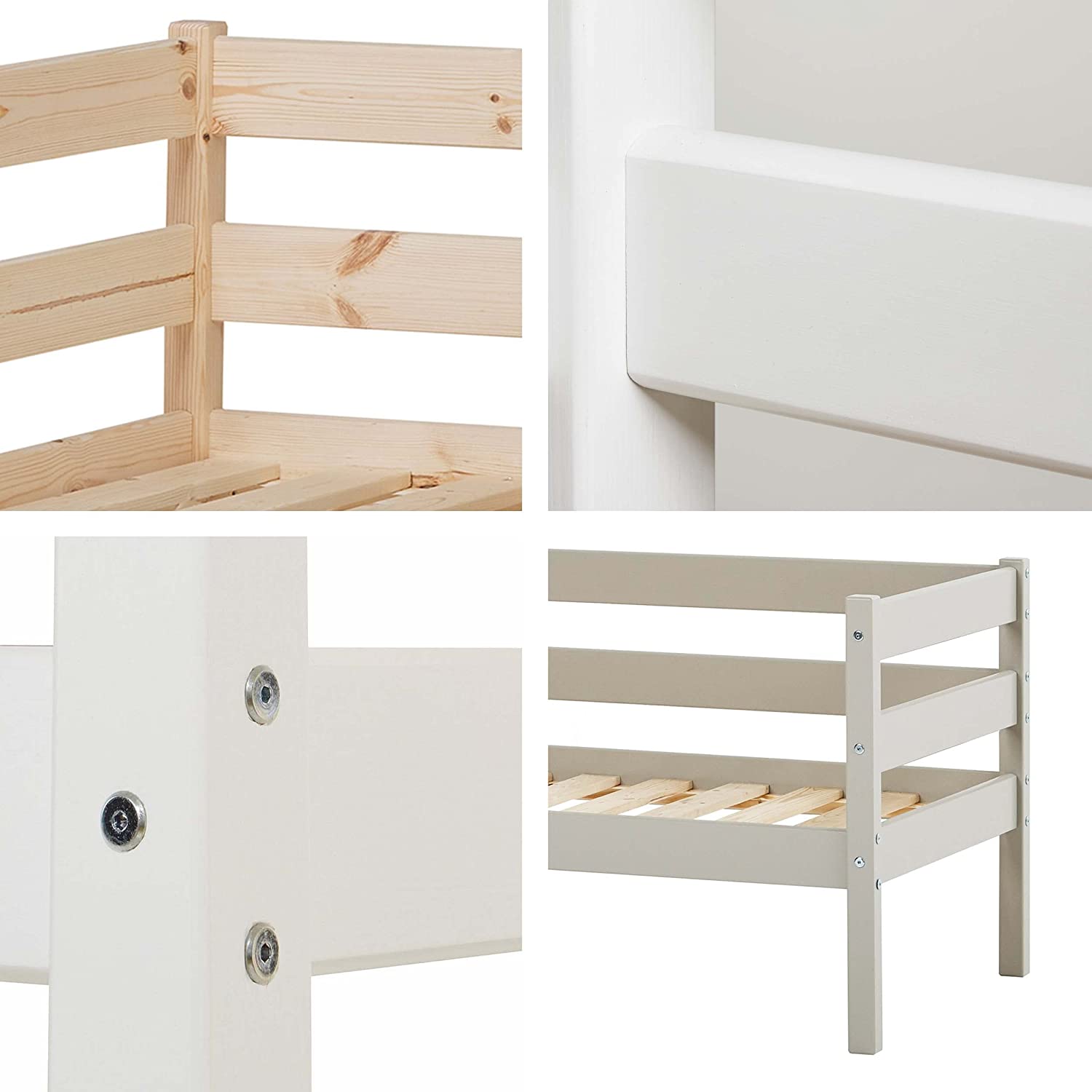 • Детските легла от серия ECO Comfort са TÜV тествани и отговарят на стандарта DS/EN747. Боята на водна основа е сертифицирана от TÜV съгласно DS/EN71-3. Кошарите издържат до 60 кг.