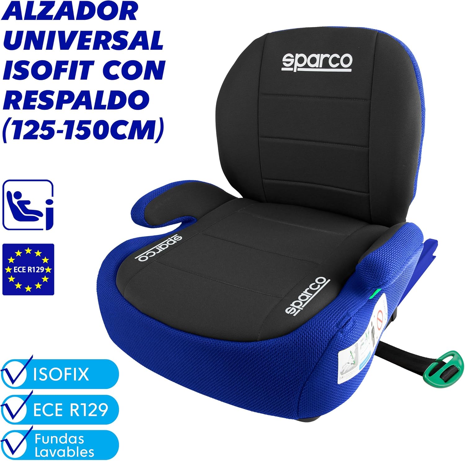 • Бустерната седалка Sparco е проектирана за максимален комфорт по време на пътувания и е с 3 см дебела подплата за удобна и ергономична седалка. Изработена от дишащ материал, тя има сваляем и перещ се калъф за лесно почистване и дълготрайна свежест, дори при дълги пътувания или в топло време.