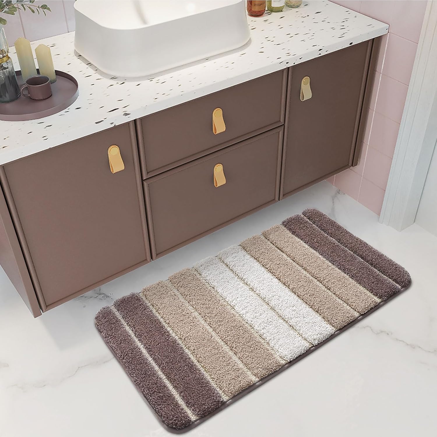• Гаранция без притеснения: семплият и щедър модел добавя красив и богат декоративен елемент към вашата баня. Предлага се в разнообразие от цветове и размери. Килимът е подходящ за различни поводи, като бани, кухни, мивки, дневни, конферентни зали, кабинети, спални и др.