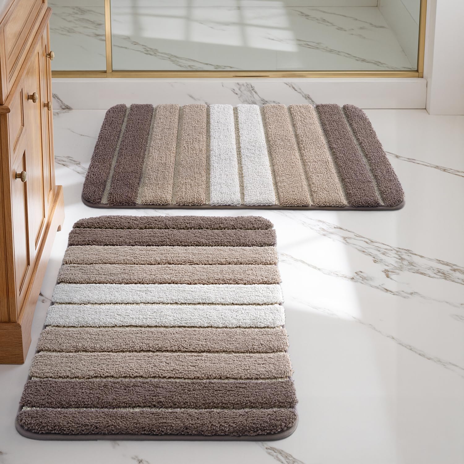 DEXI Пакет от 2 неплъзгащи се постелки за баня, 40 x 60 см, мек килим за баня, абсорбираща постелка за баня, постелка за баня, която може да се пере, за баня, душ, вани, бежово