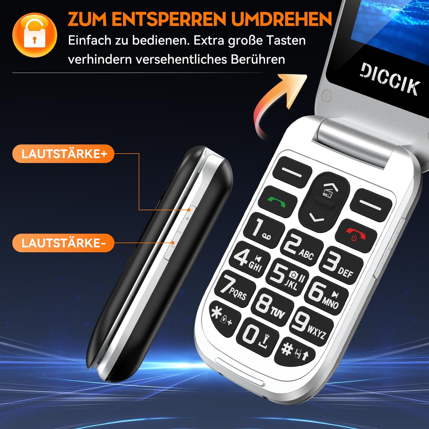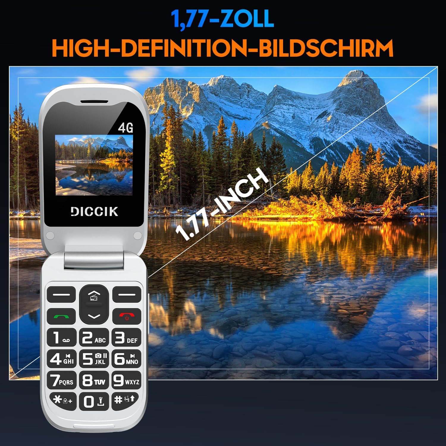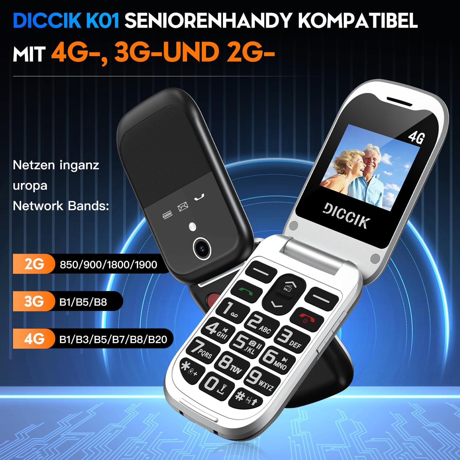 • Отключен 4G мобилен телефон за възрастни без SIM карта: Телефонът за възрастни DICCIK K01 е съвместим с всеки мобилен оператор, който поддържа 4G мрежи (съвместим с 2G и 3G мрежи). Предлагаме едногодишна гаранция за продукта + фактура + приятелско обслужване на клиентите. Ако имате проблем, моля, свържете се с нас.