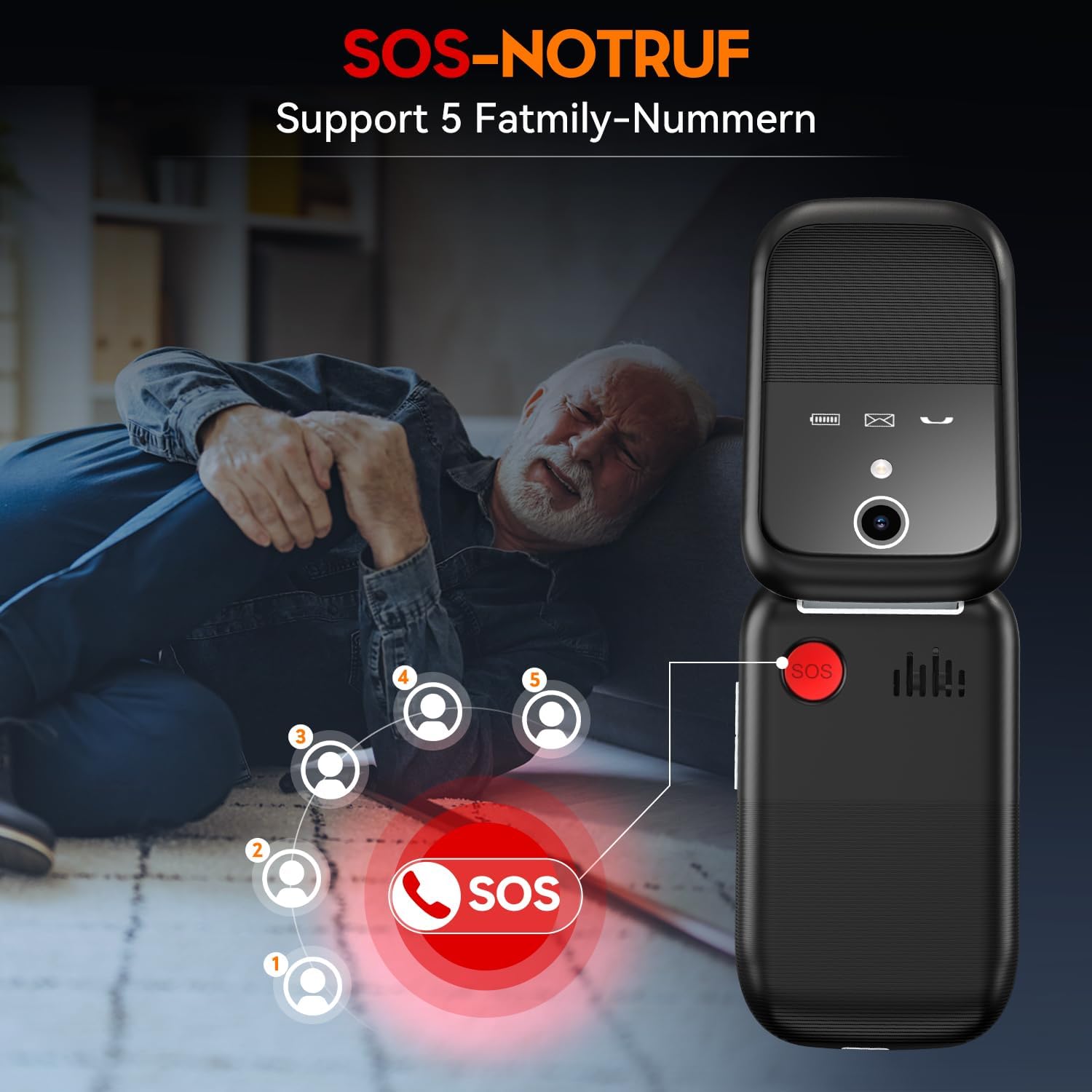 • Стабилни разговори и батерия от 1000 mAh: този модел разполага с висококачествен MTK чип, който подобрява сигнала на телефона и позволява по-стабилно качество на разговорите. Освен това, тази подобрена версия има по-голяма батерия от 1000 mAh с невероятно време на готовност от 4-6 дни и непрекъснато време за разговори от 4-5 часа. Две опции за зареждане: станция за зареждане на мобилен телефон или директно зареждане чрез USB-C кабел, по-бързо и безопасно.