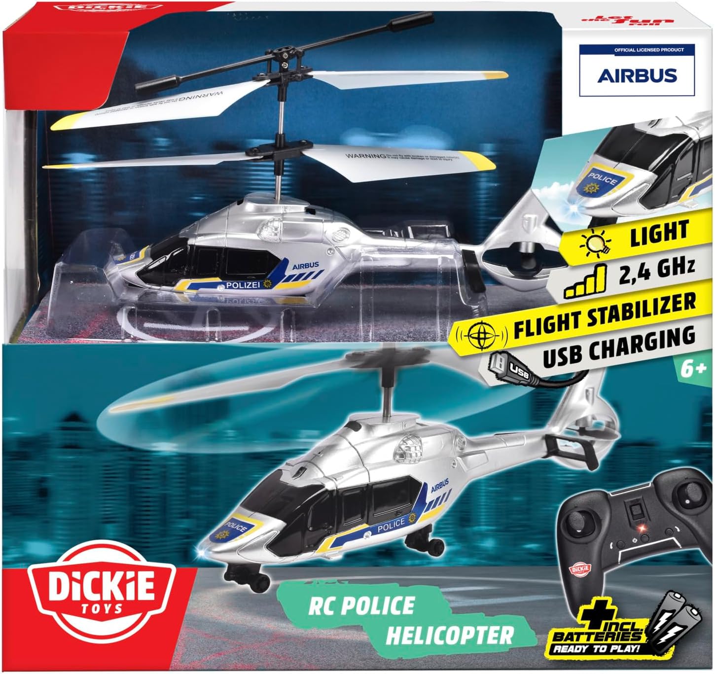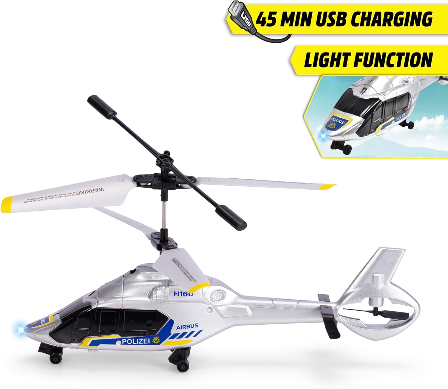Dickie Toys - RC полицейски хеликоптер Airbus H160 (21 см) - Хеликоптер с дистанционно управление от 8 години със стабилизатор на полета и светлина, играчка за деца, включва дистанционно управление и батерии