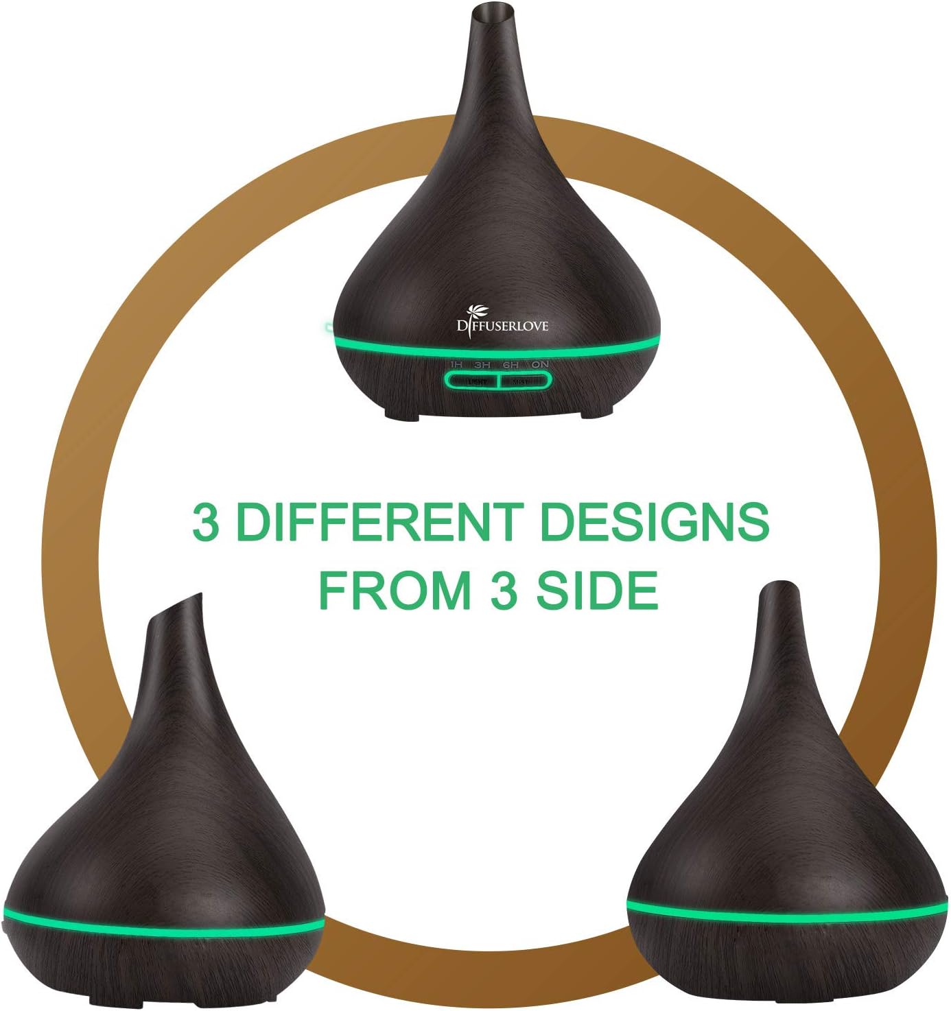 Този дифузер за етерични масла е оборудван с функция за автоматично изключване без вода и ще се изключи автоматично, когато водата свърши, за безопасност и за защита на дифузера. Таймерът е от 1H, 3H, 6H или служи като ориентир.