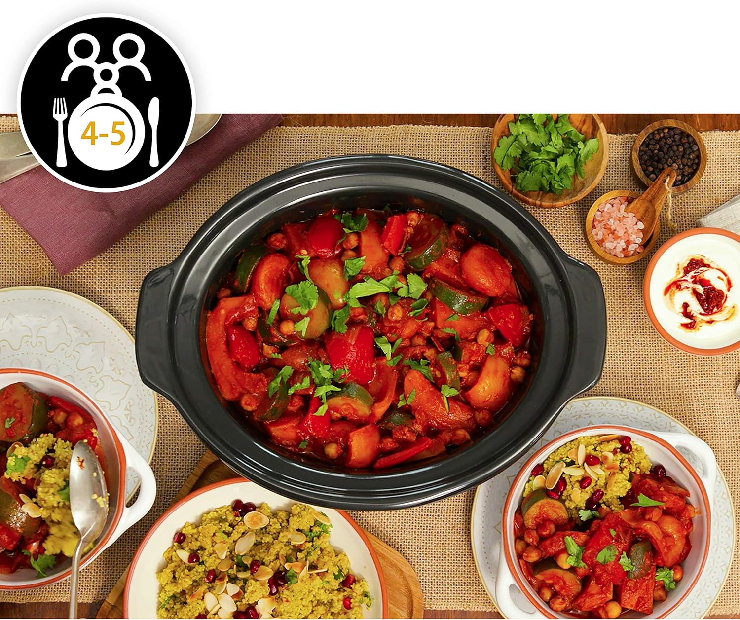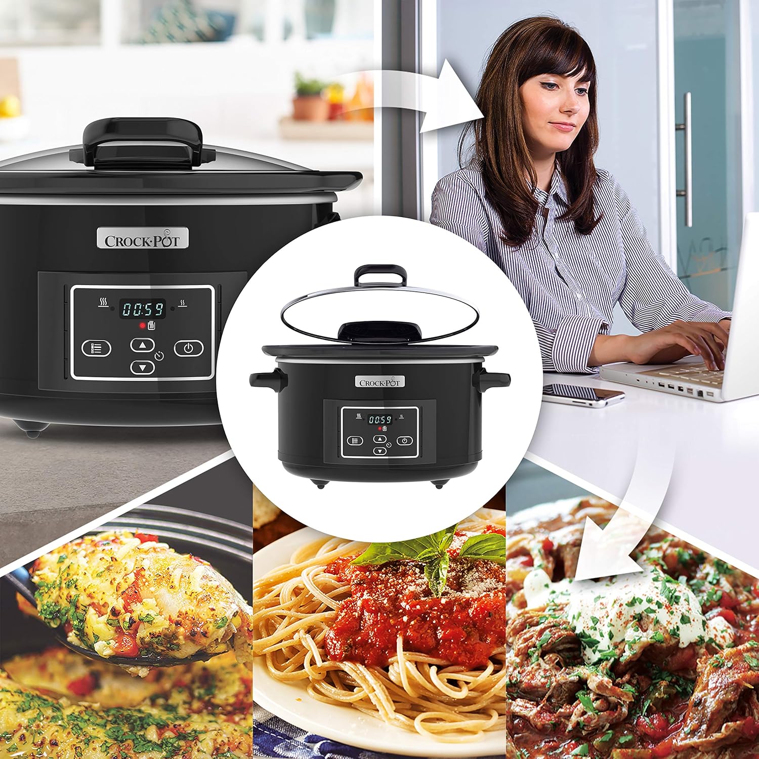 Дигитална бавна готварска печка Crock-Pot с капак на панти | Регулируемо време за готвене | 4,7 литра (4-5 души) | Черен (неръждаем метал) [CSC052X]