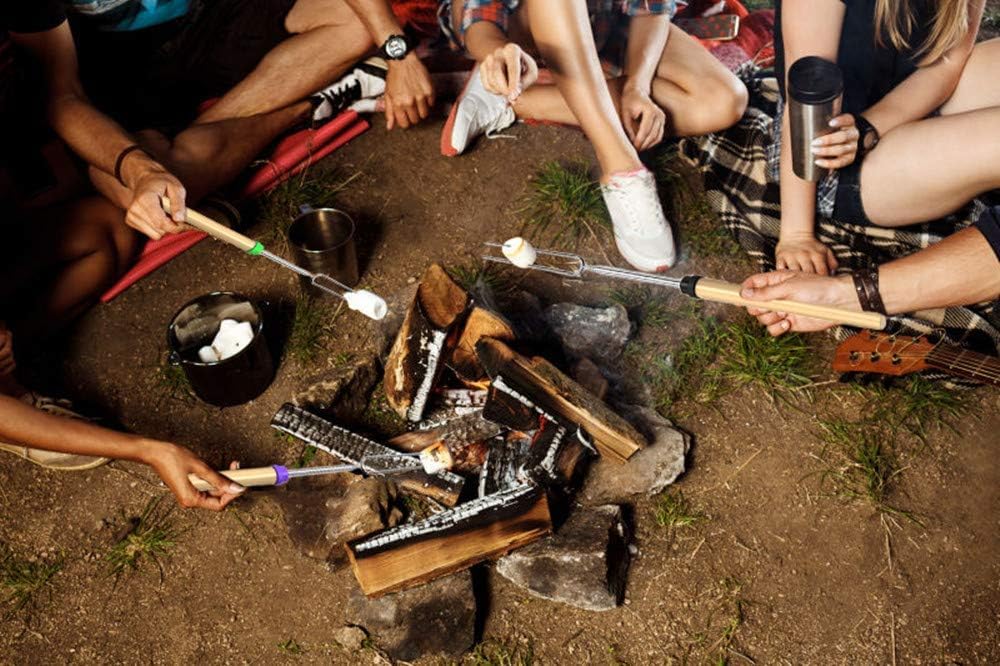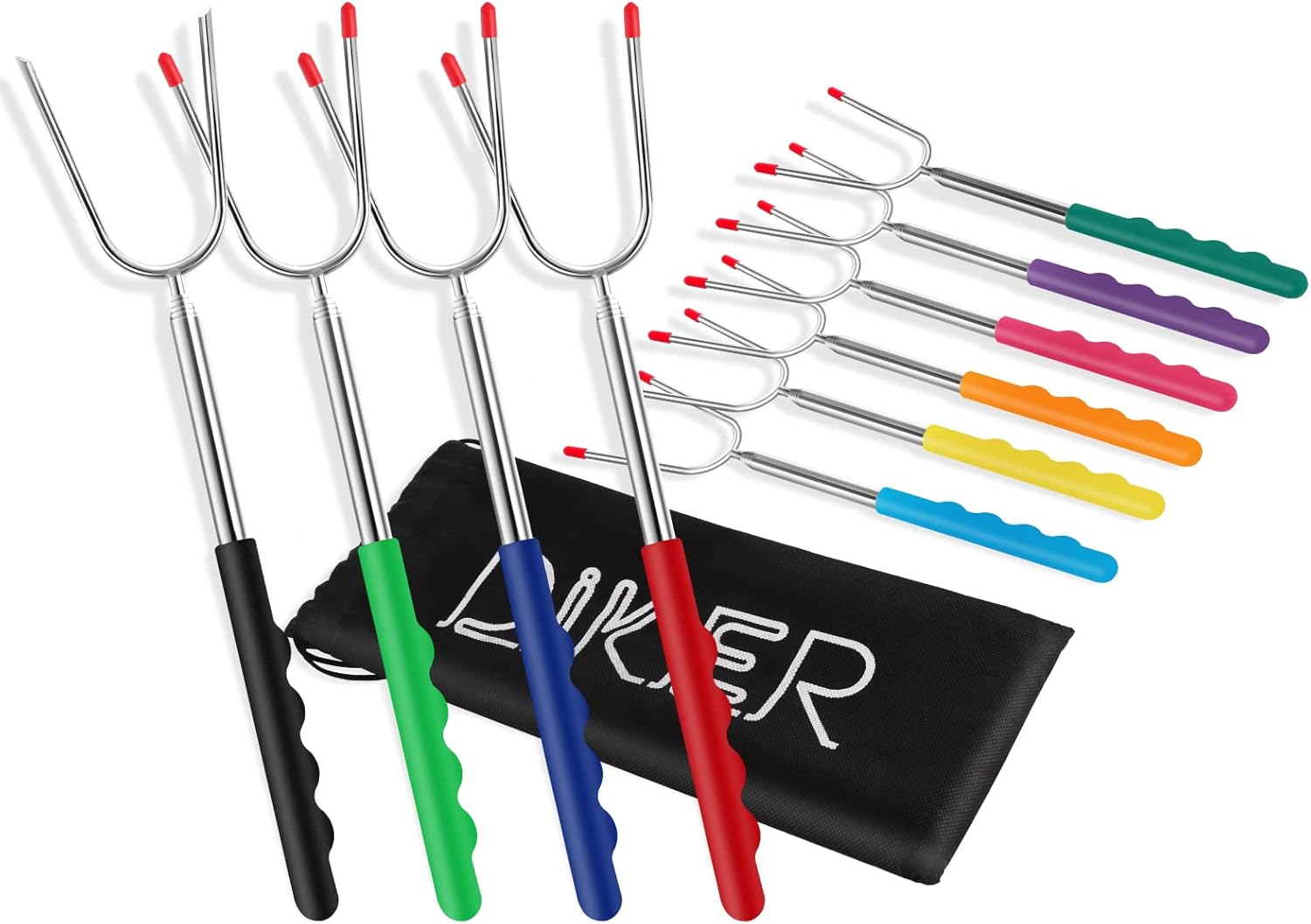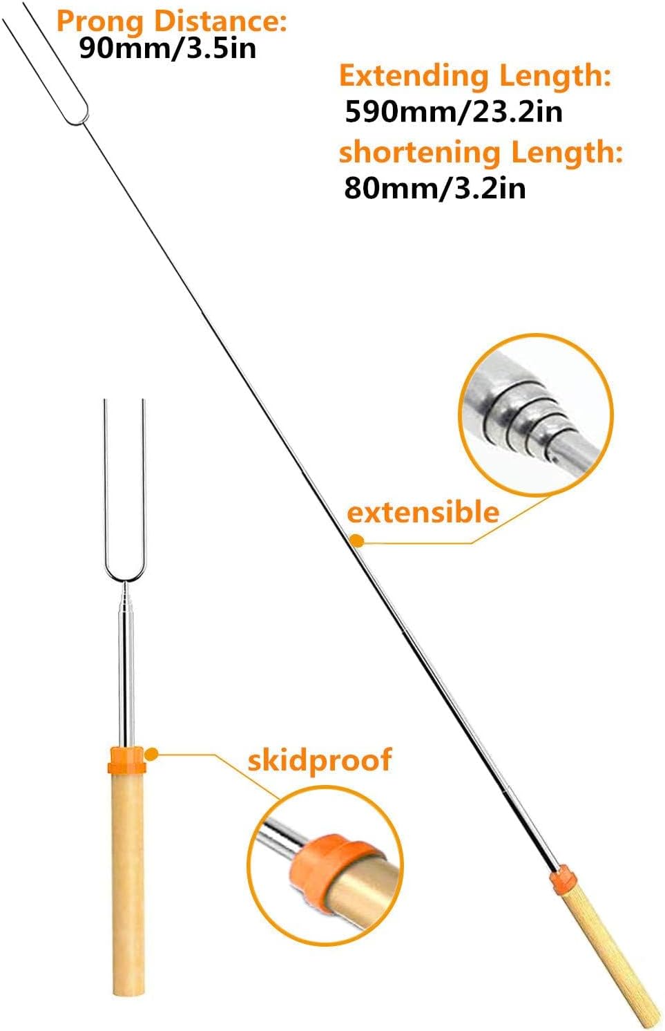 • Телескопична пръчка за печене: телескопичните вили могат да се удължават от 30 см до 81 см, разтегателните пръчки са идеални за барбекю партита, лагерни огньове на терасата, в градината, къмпинг и др. и могат ефективно да поддържат добро разстояние между хората и лагерните огньове.